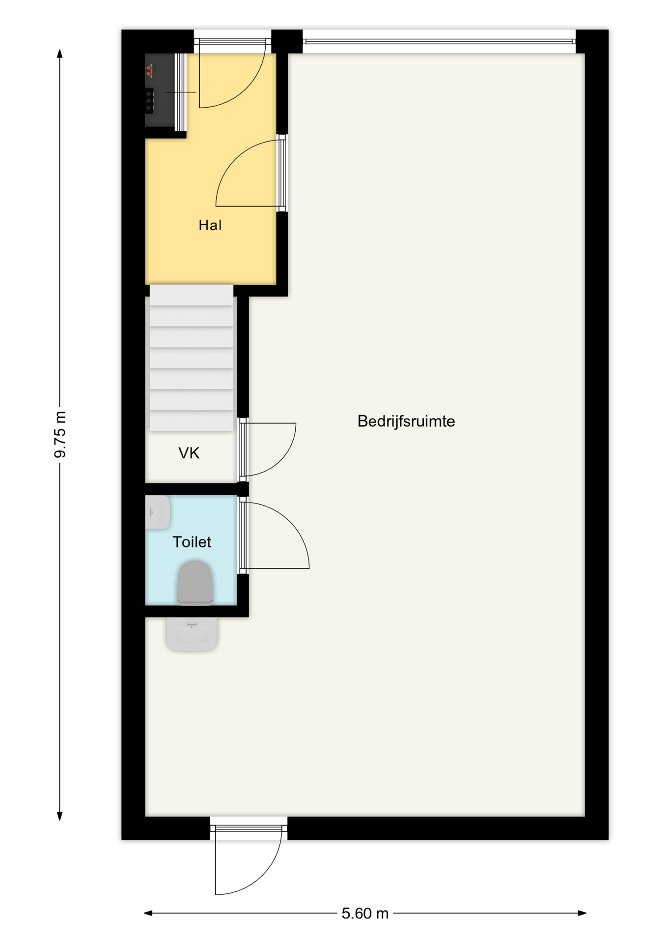 Binnenkomst middels de elektrische op afstand bedienbare overheaddeur of de loopdeur in de hal met meterkast (inclusief krachtstroom) en trapopgang. De bedrijfsruimte is geschikt voor diverse doeleinden en beschikt over een uitstortgootsteen, trapkast en modern toilet met fonteintje. Aan de achterzijde kan een buitenruimte gecreëerd worden.