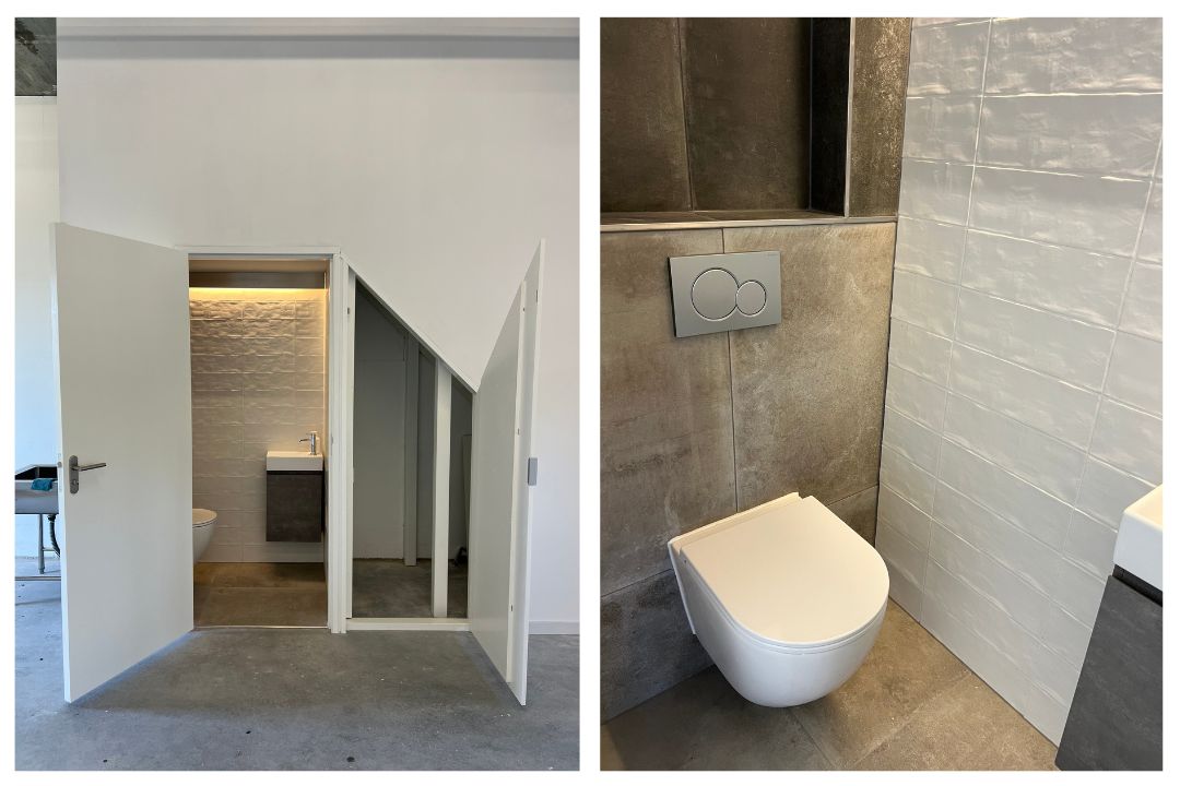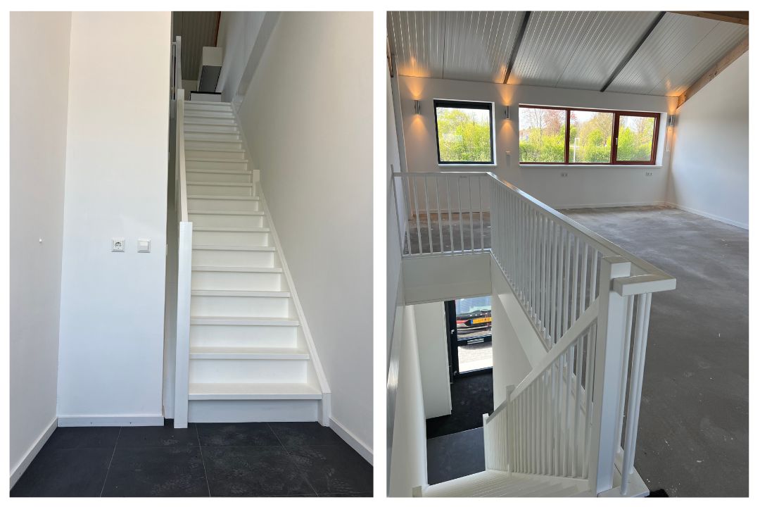 De bedrijfsruimte heeft een vloeroppervlak van circa 110 m² verdeeld over twee verdiepingen. Er kunnen twee auto’s op eigen terrein geparkeerd worden.