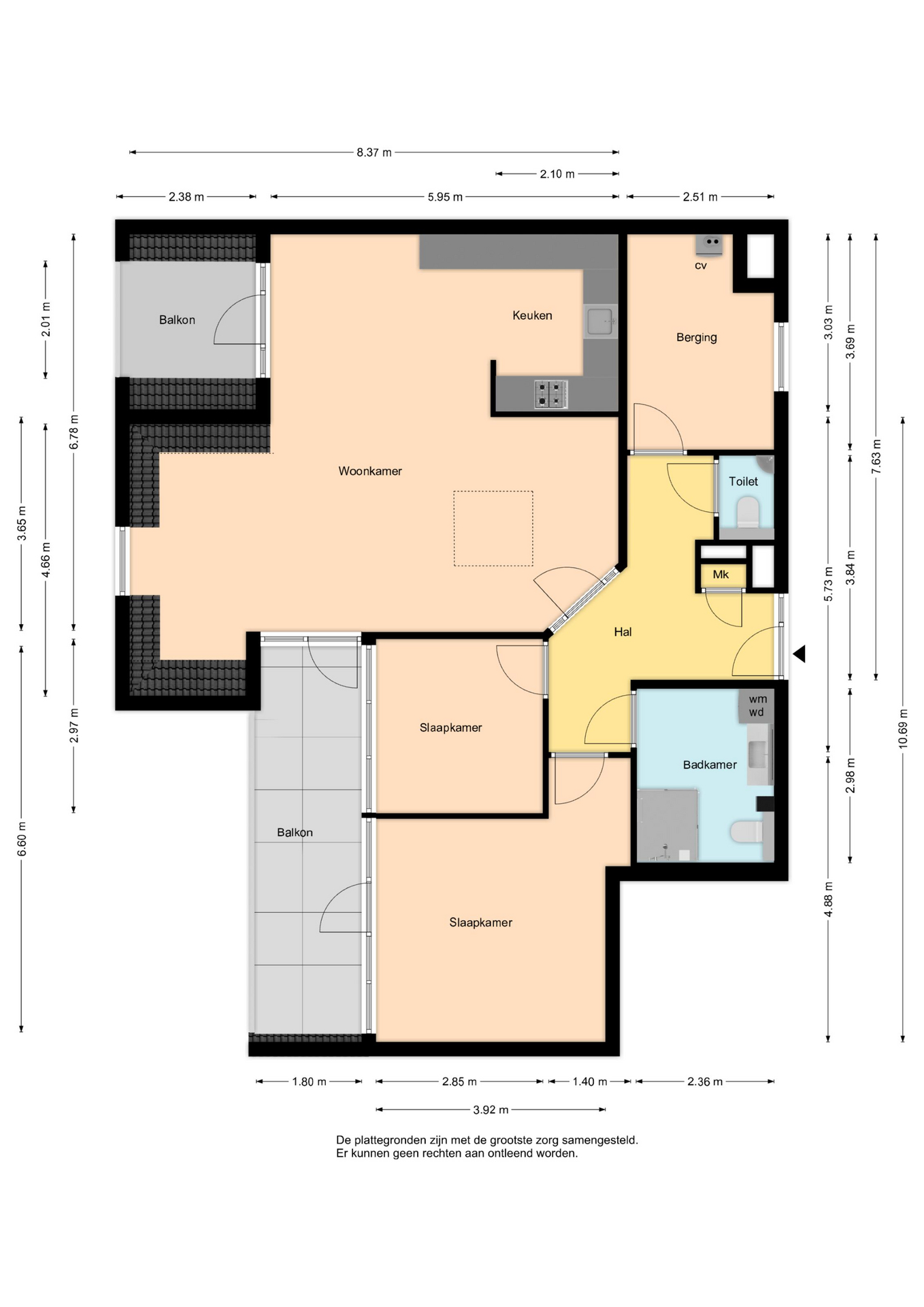 Deze vrijblijvende objectinformatie is met de meeste zorg samengesteld, maar voor de juistheid daarvan kunnen wij geen aansprakelijkheid aanvaarden. Ook kan aan de vermelde gegevens geen enkel recht worden ontleend. Alle informatie is enkel en alleen bedoeld voor de presentatie van het object en niet meer dan een uitnodiging tot het doen van een bod. Eventueel bijgevoegde plattegronden zijn slechts indicatief.
