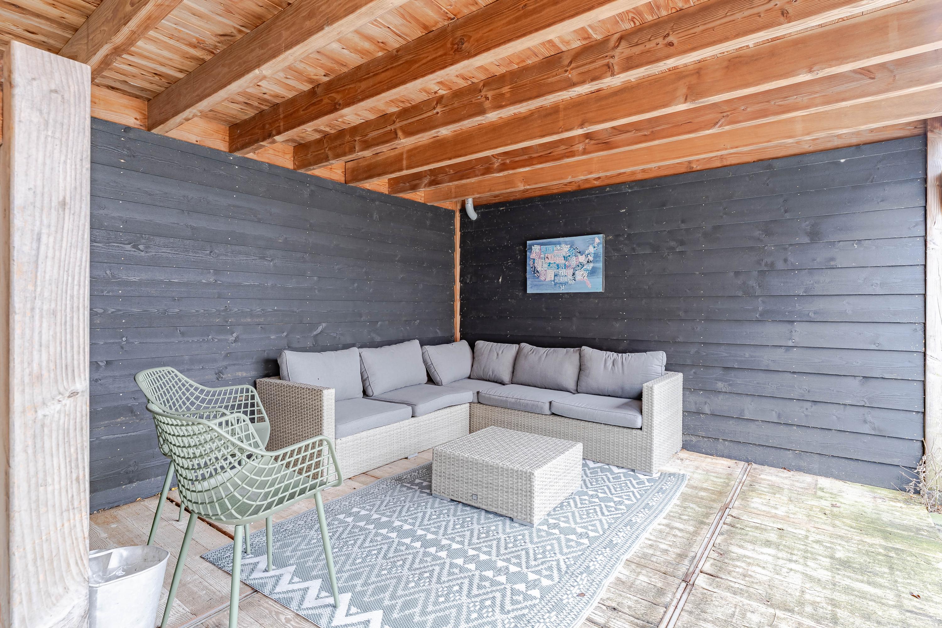 Samengevat een ruime en vrij gelegen tuin waar u rustig kunt zitten, maar ook perfect voor spelende kinderen of een gezellige barbecue met vrienden.