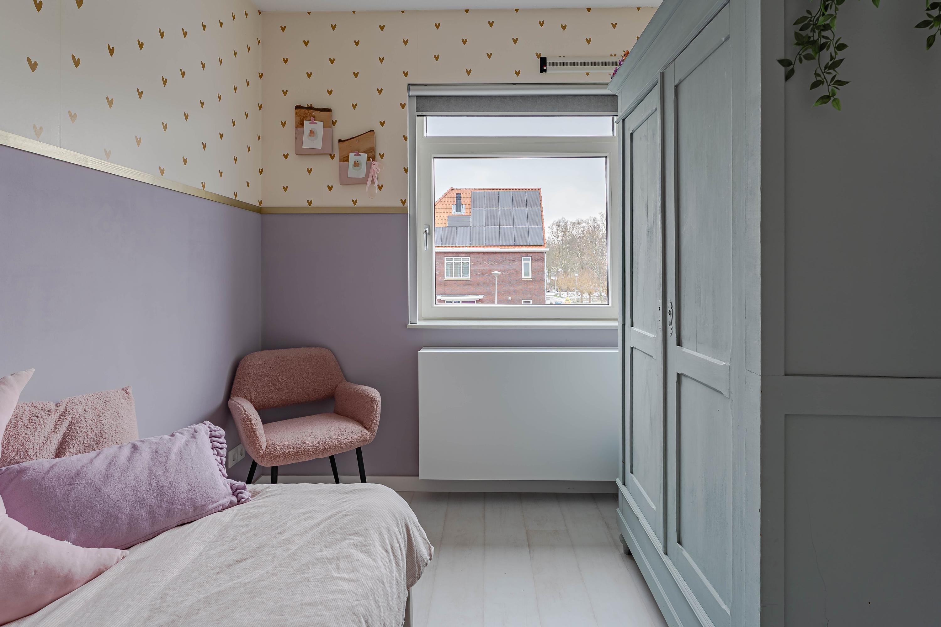 Boven de kamer aan de voorzijde is bergruimte gecreëerd. Met een hoogte van circa 1,80 meter maakt het een ideale plek voor het opbergen van koffers, seizoensgebonden spullen en andere zaken die je niet dagelijks nodig hebt.