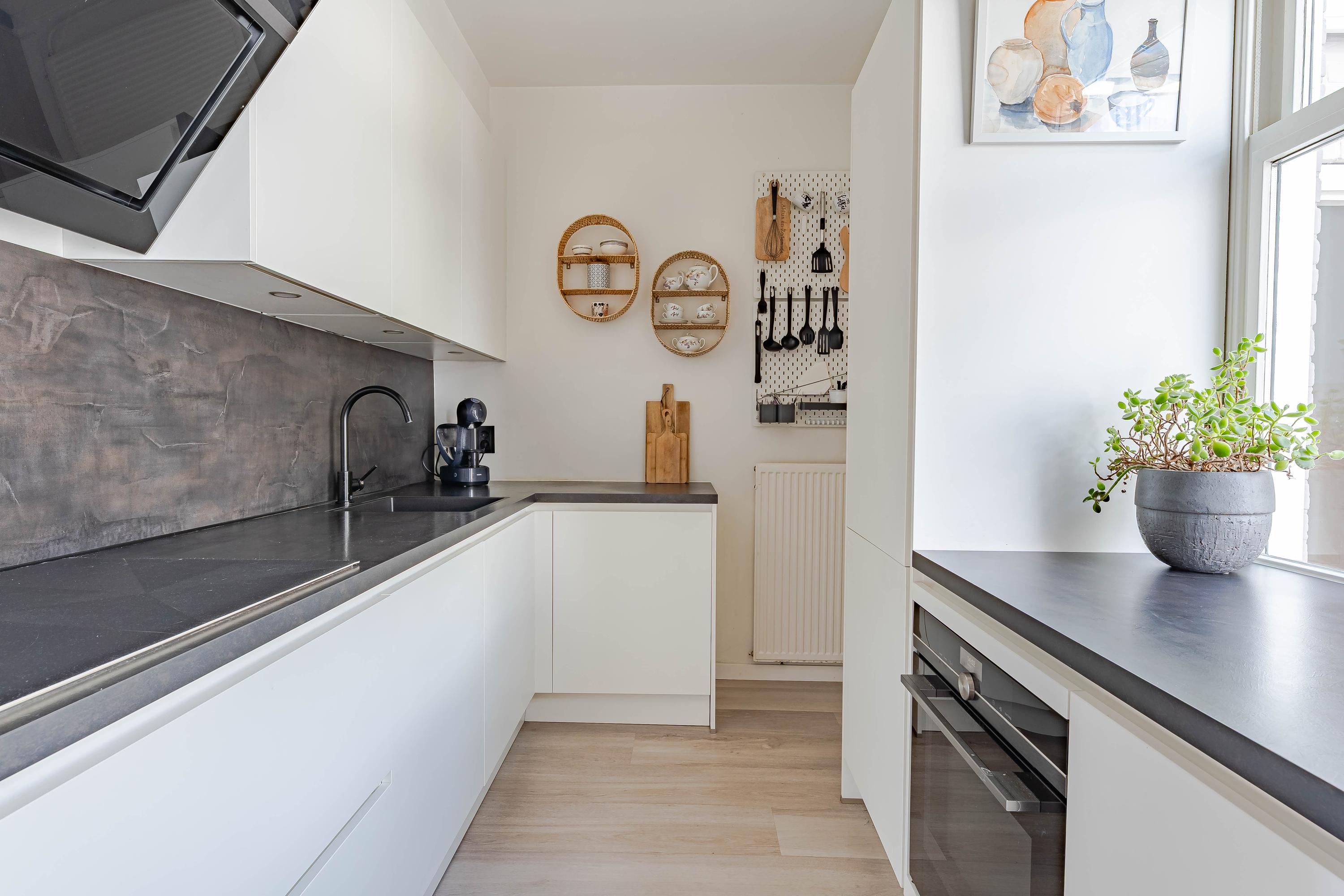 De in 2021 geplaatste keuken is modern en voorzien van een inductiekookplaat, afzuigkap, combi-oven, koel-vriescombinatie, carrousel kast en vaatwasser.
