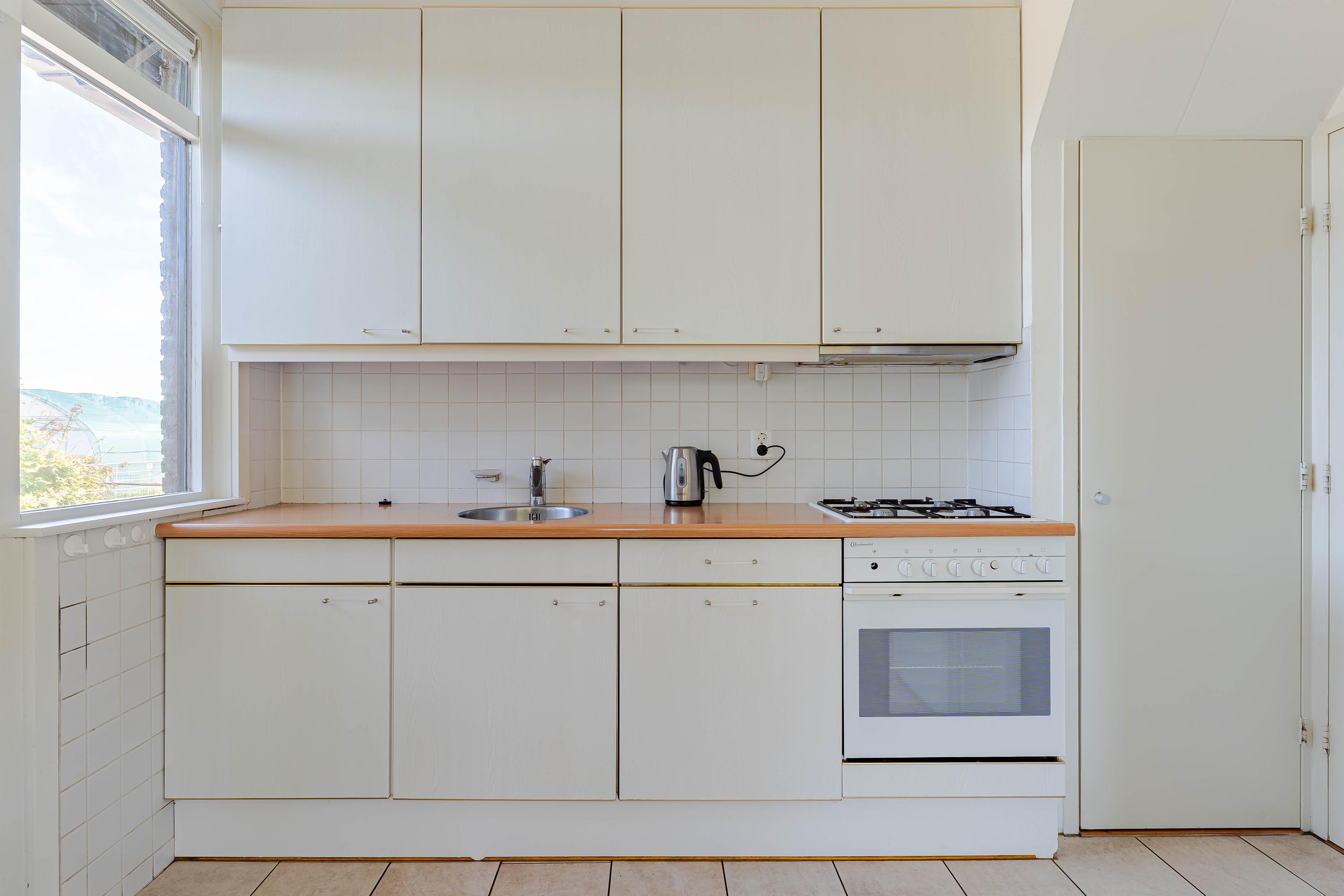 Hoewel de keuken eenvoudig is ingericht met een 4-pits gasfornuis, afzuigkap en oven, biedt de ruimte volop mogelijkheden om naar eigen smaak in te richten. Dankzij de lichtinval is het een heerlijke plek om te koken. Er is meer dan genoeg plek voor een gezellige eethoek waar je met vrienden of familie kunt tafelen. De deur naar de achtertuin maakt het helemaal compleet, handig als je op warme dagen buiten wilt eten!