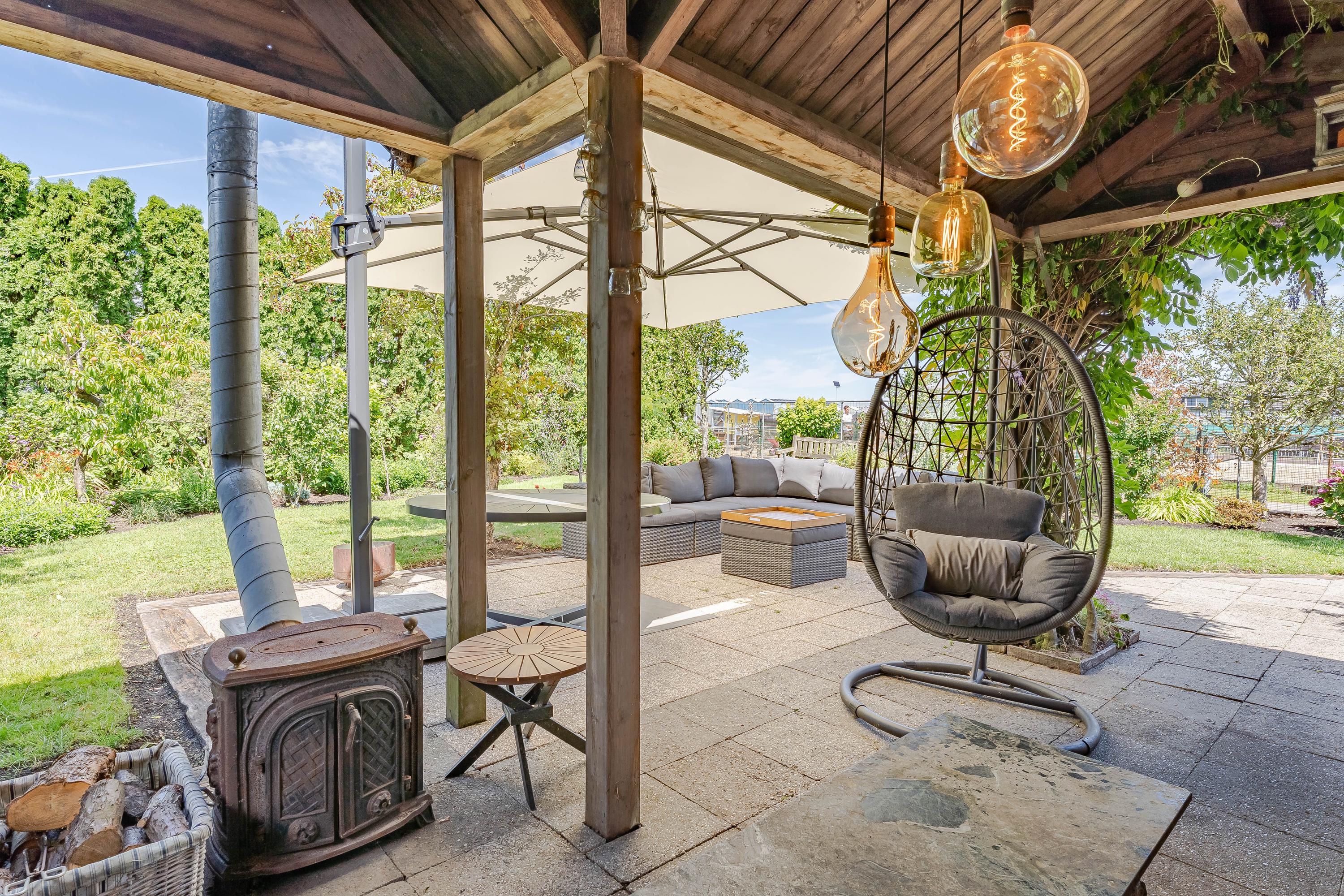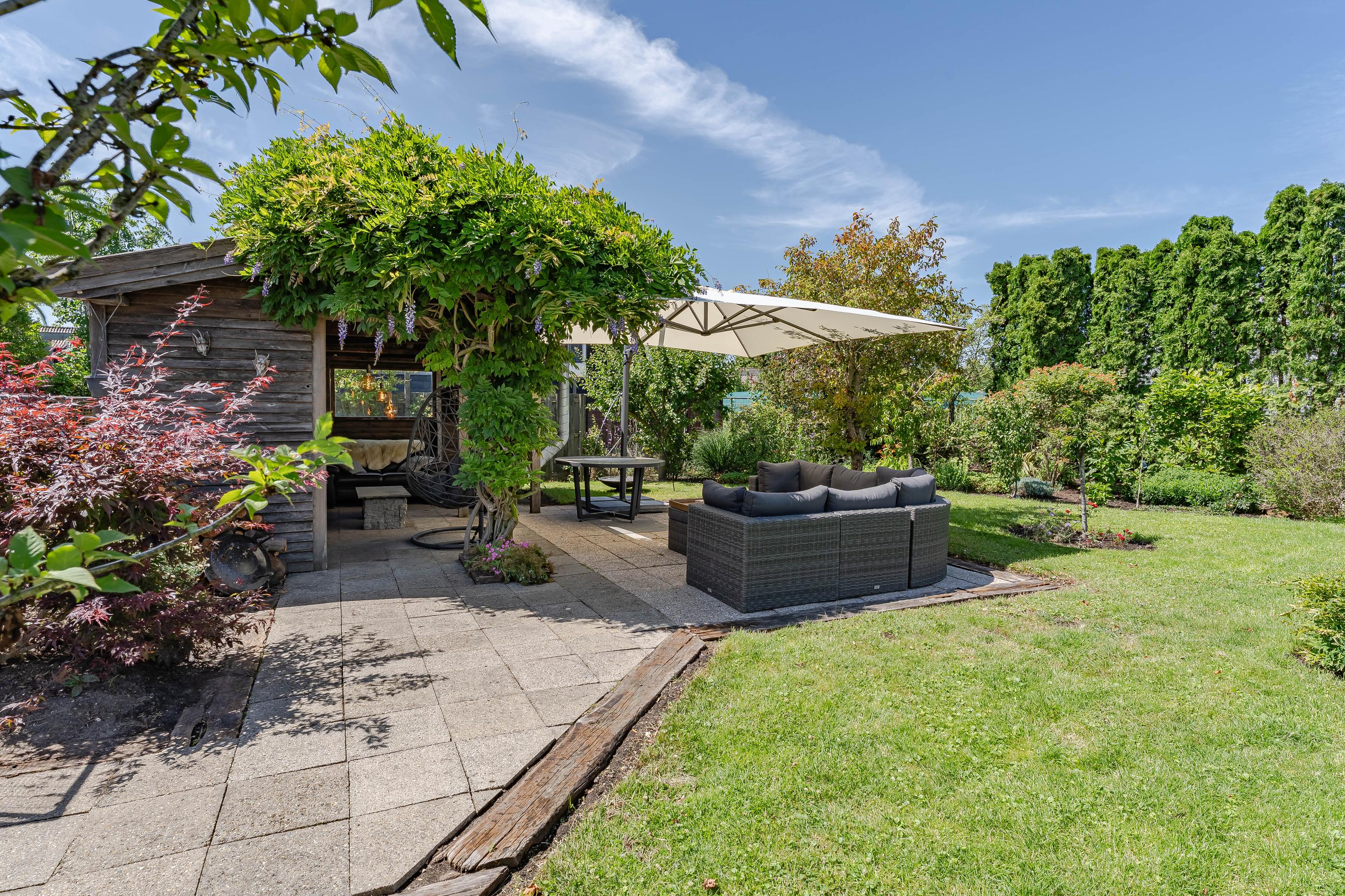 Niet alleen de woning heeft voldoende ruimte, ook de tuin en garage hebben veel te bieden. Aan de voorzijde is een mooie tuin aangelegd met prachtige beplanting. Er zijn twee parkeerplaatsen gerealiseerd en ook aan de elektrische auto is gedacht, want de laadpaal is ter overname. Aan de achterzijde is een overkapping gemaakt met een sfeervolle kachel erin, een heerlijke plek voor een lange zomeravond met familie of vrienden. Verder is er in de tuin voldoende privacy. De garage is ruim, bereikbaar door middel van een loop- en kanteldeur en ideaal voor het opbergen van tuinspullen, een motor of andere hobby!