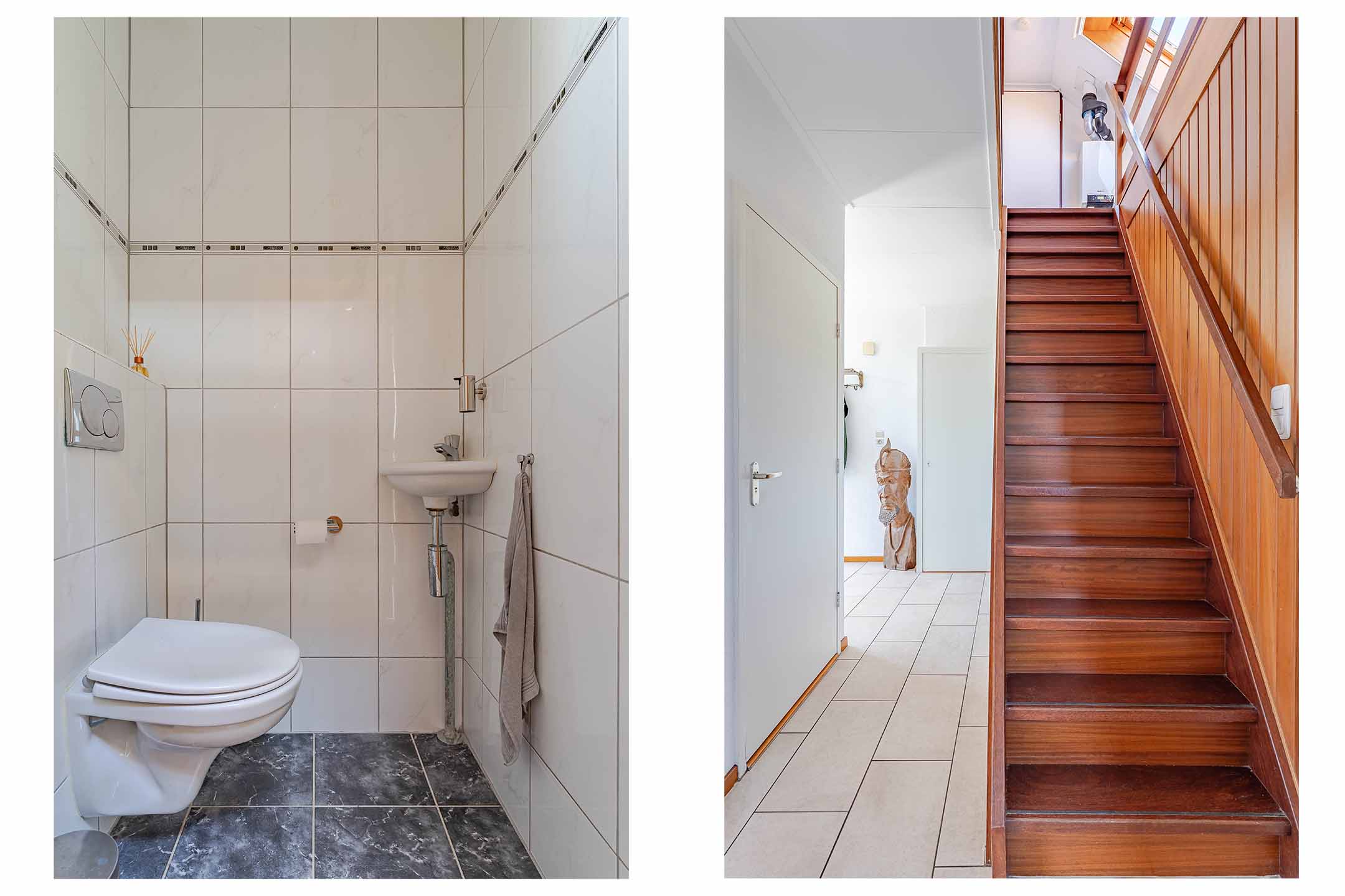 Bij binnenkomst in de hal treft u de meterkast, modern toilet met fonteintje, toegang tot de woonkamer, slaapkamers, badkamer en trapopgang naar de eerste verdieping. Verder is er in de hal voldoende ruimte voor een garderobe.