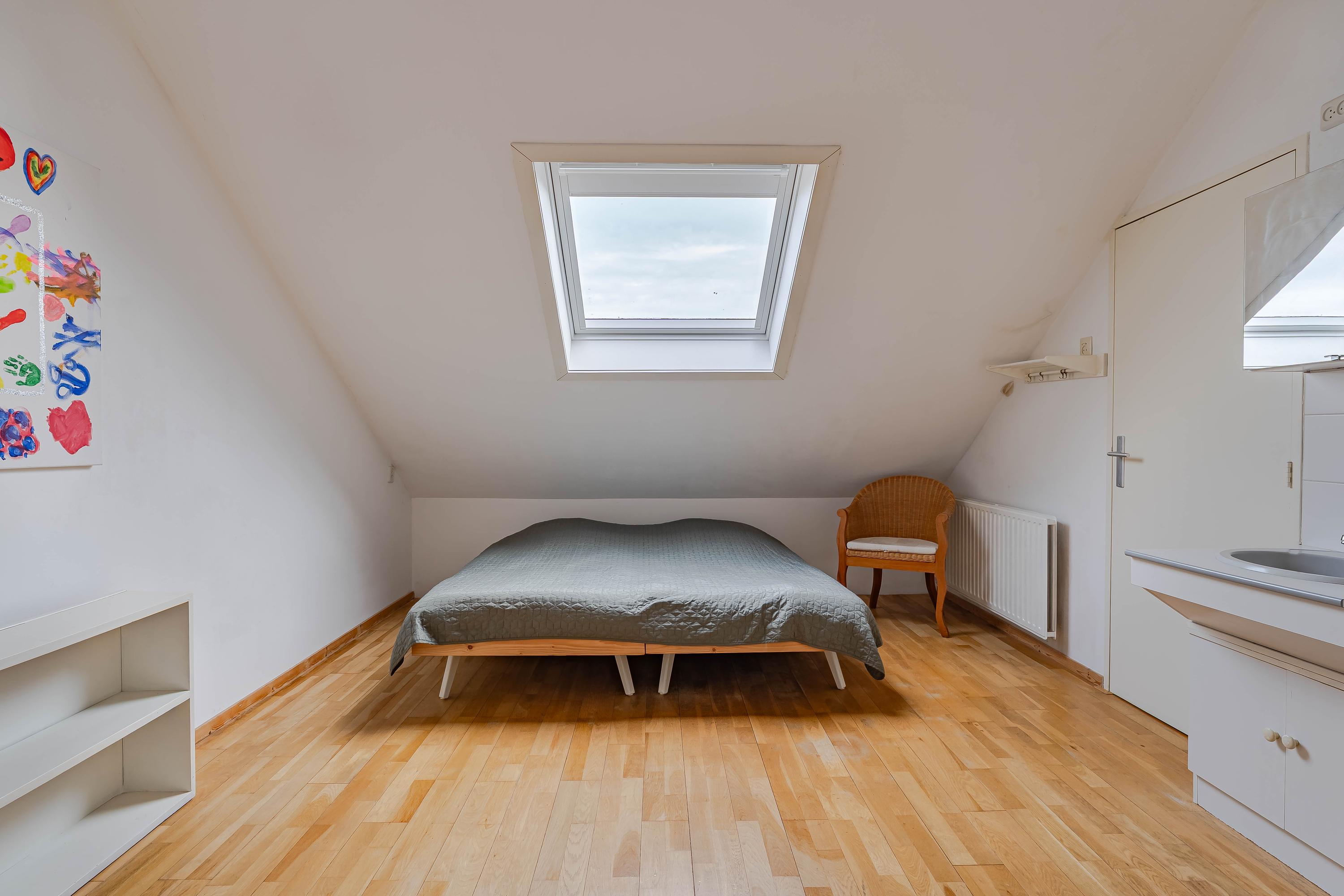 Tweede verdieping: Overloop met de opstelplaats van de cv-ketel (Nefit, bouwjaar ca. 2014) en veel bergruimte. Een kopgevel- en dakraam zorgen voor lichtinval. De ruime vierde slaapkamer is voorzien van een dakraam en biedt ook hier volop bergruimte. Deze verdieping leent zich uitstekend voor uitbreiding: met een dakkapel creëert u eenvoudig nog meer ruimte.