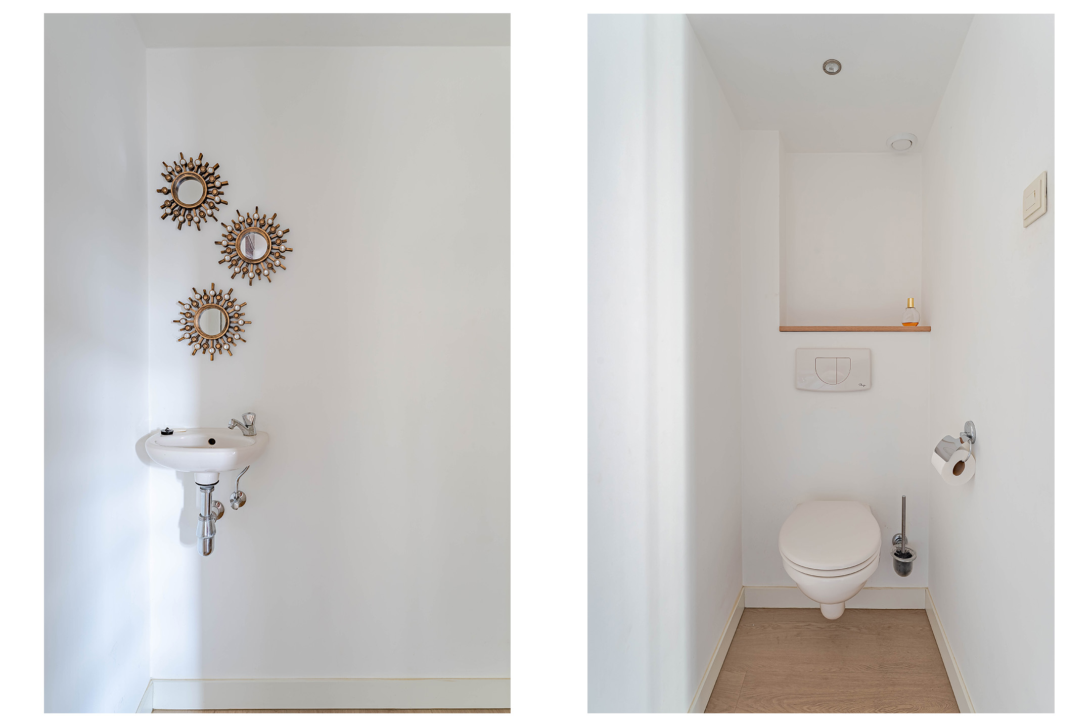 Eerste verdieping: Overloop met trap naar de tweede verdieping. Drie mooie slaapkamers, waarvan twee kamers aan de voorzijde en een derde kamer aan de achterzijde. De in ca. 2020 vernieuwde badkamer is voorzien van een inloopdouche, wastafel met meubel, kolomkast en er is een designradiator geplaatst. Deze verdieping heeft een aparte toiletruimte met een staand closet.