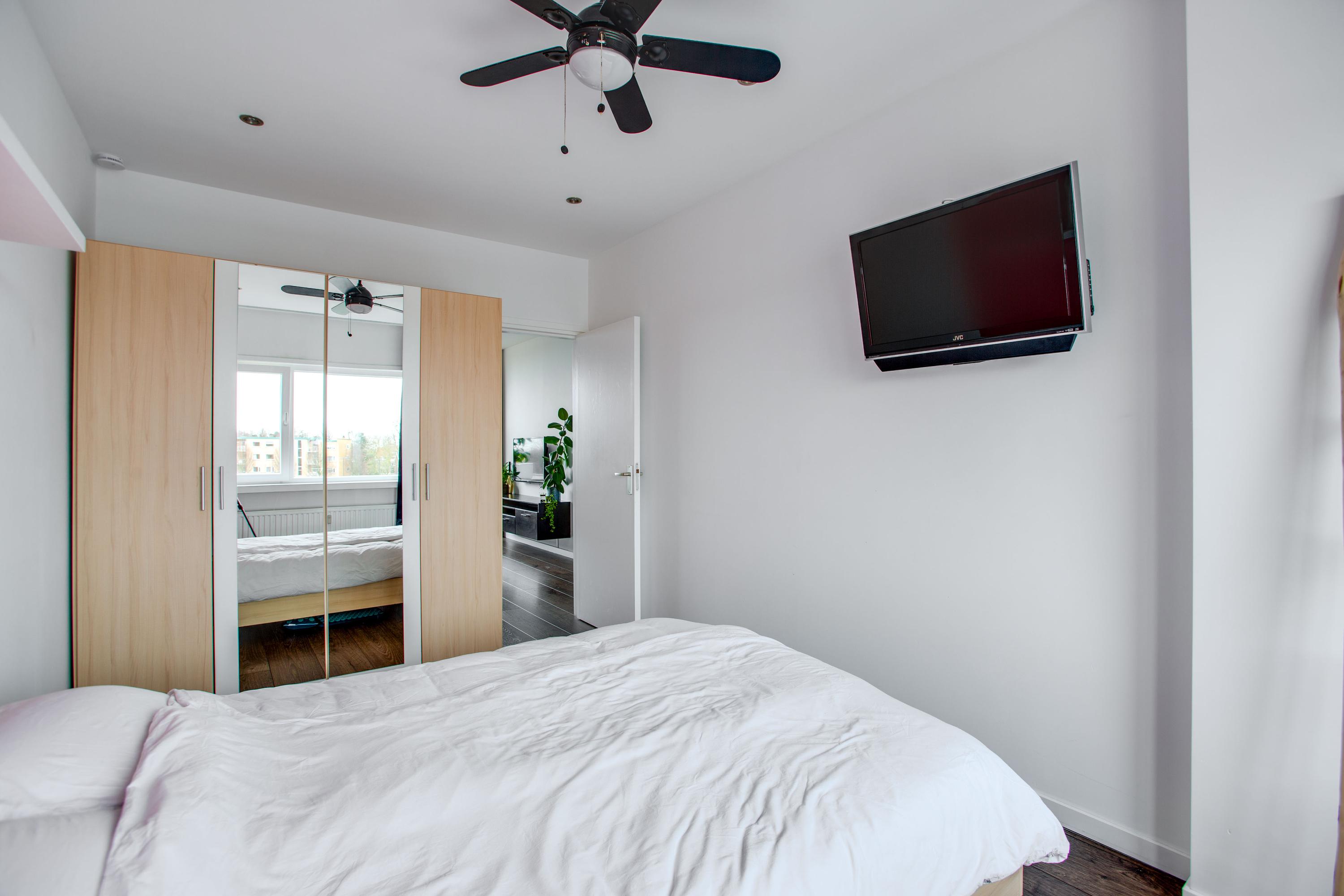 Beide slaapkamers zijn van een mooi formaat, de grote ramen zorgen voor een fijne lichtinval. De op het zuiden gelegen slaapkamer biedt toegang tot een balkon.