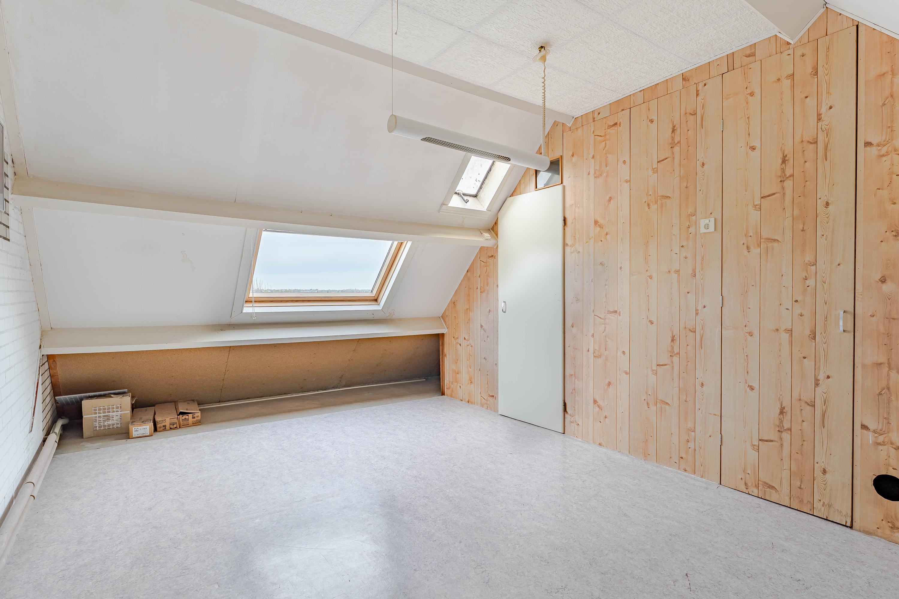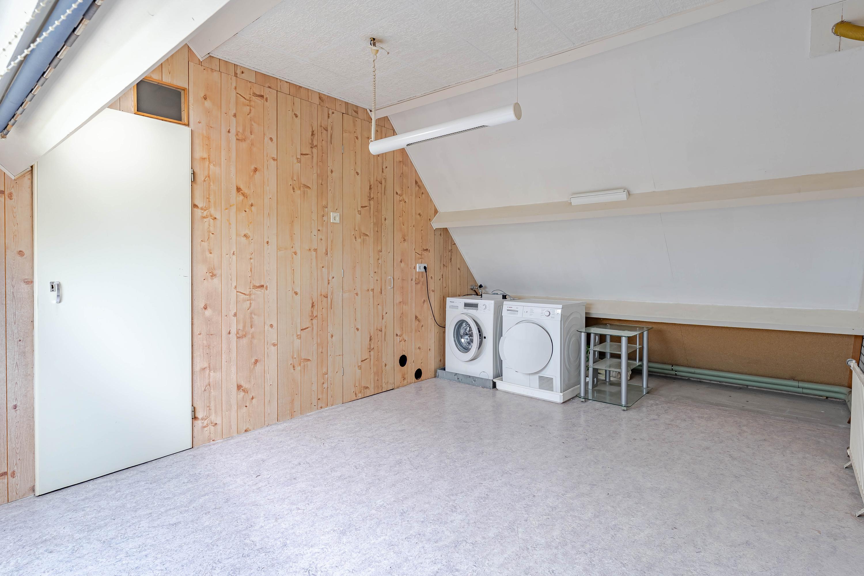 Open zolderverdieping, hier kan door middel van een dakkapel nog een extra kamer gerealiseerd worden. Het dakraam geeft voldoende lichtinval en deze ruimte wordt nu gebruikt als bergruimte. Verder staat hier de wasapparatuur opgesteld en de cv-ketel (2023).