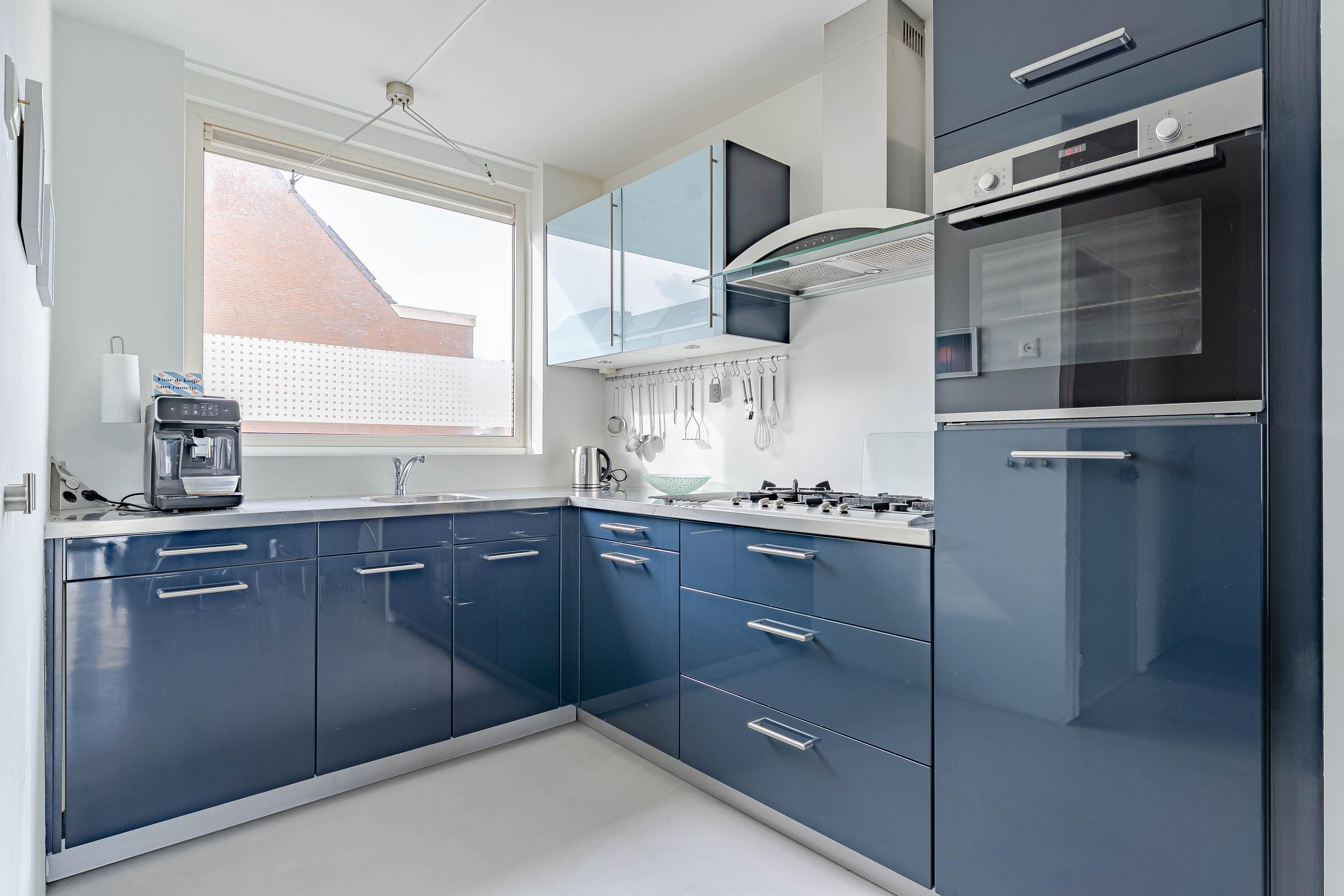 Aan de voorzijde van de woning bevindt zich de open keuken met uitzicht over de straat. De keuken is voorzien van een vaatwasser, koelkast met vriesvak, 5-pitsgasfornuis, afzuigkap en oven. Aan de voorzijde zit een elektrisch rolluik.