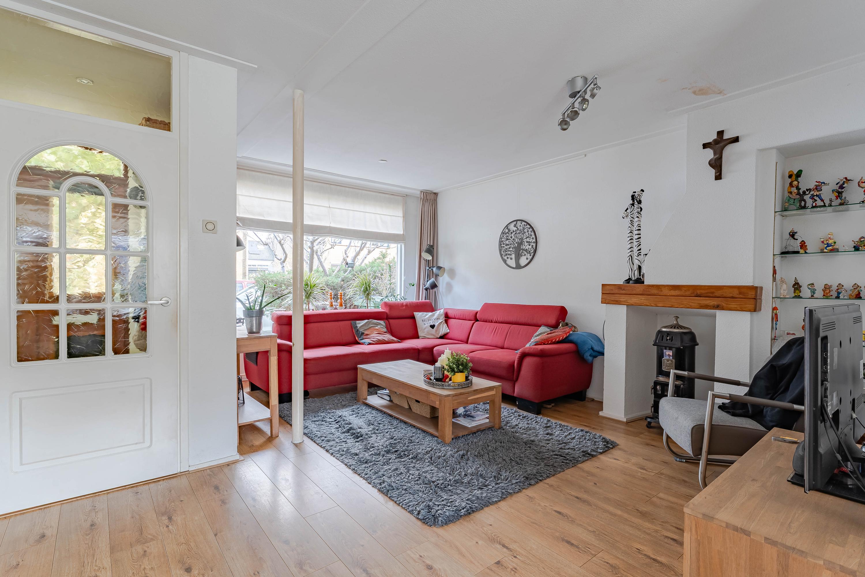 De woonkamer is door de grote raampartijen aan de voor- en achterzijde heerlijk licht. Er is voldoende ruimte voor het plaatsen van een zithoek en eethoek.