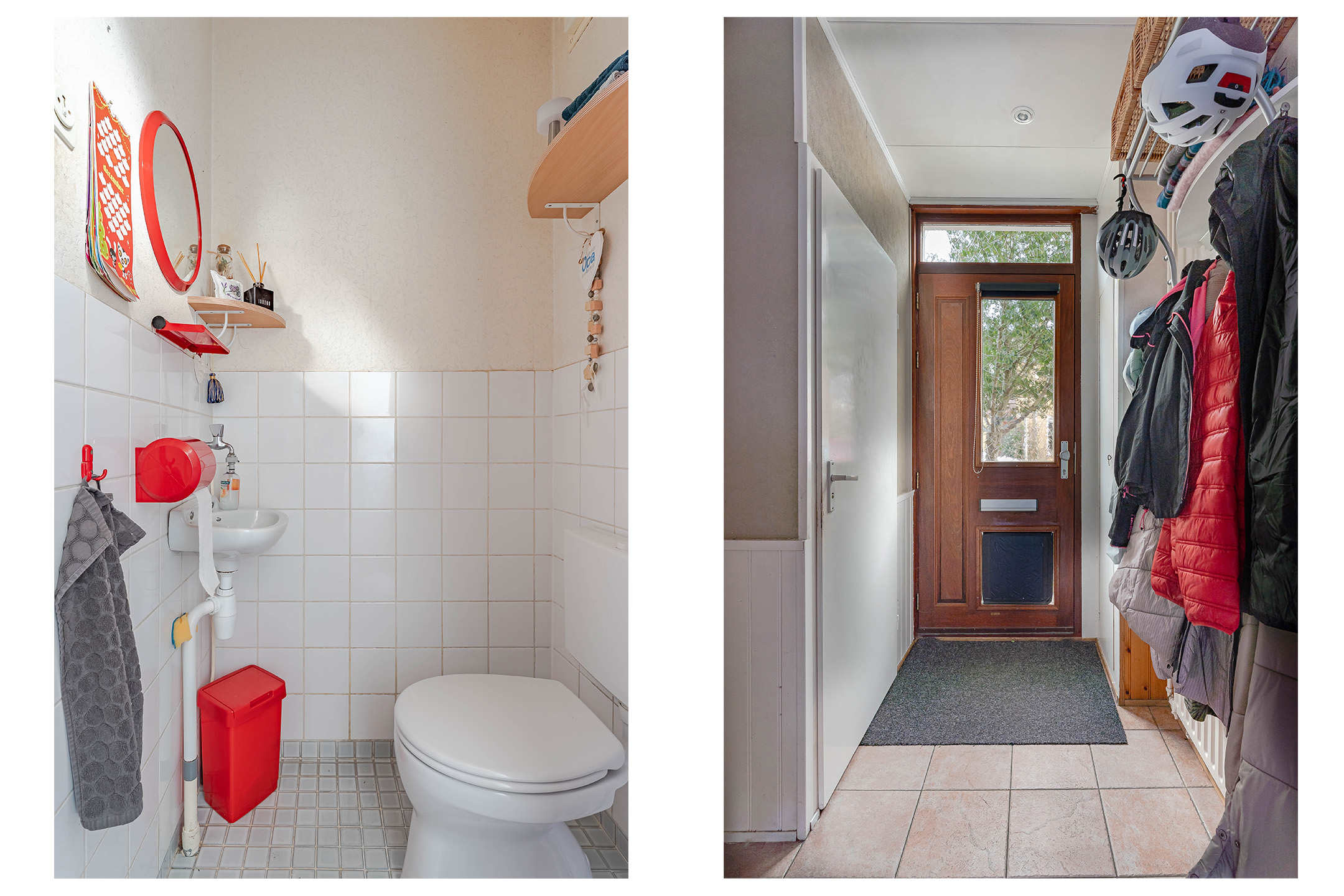 Via de voortuin komt u in de hal welke toegang geeft tot de woonkamer, garderobe, meterkast, vaste kast en toiletruimte met fonteintje.