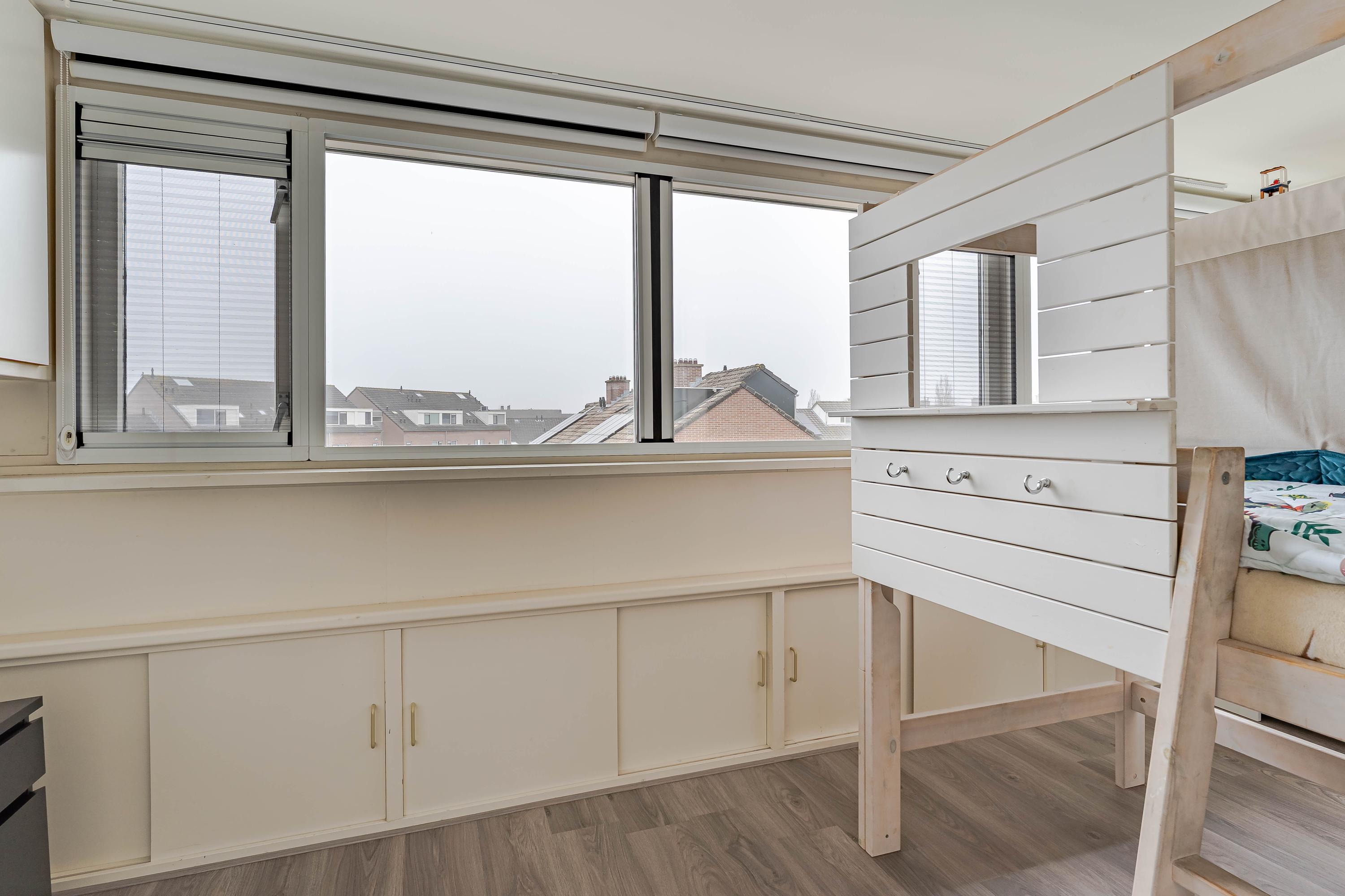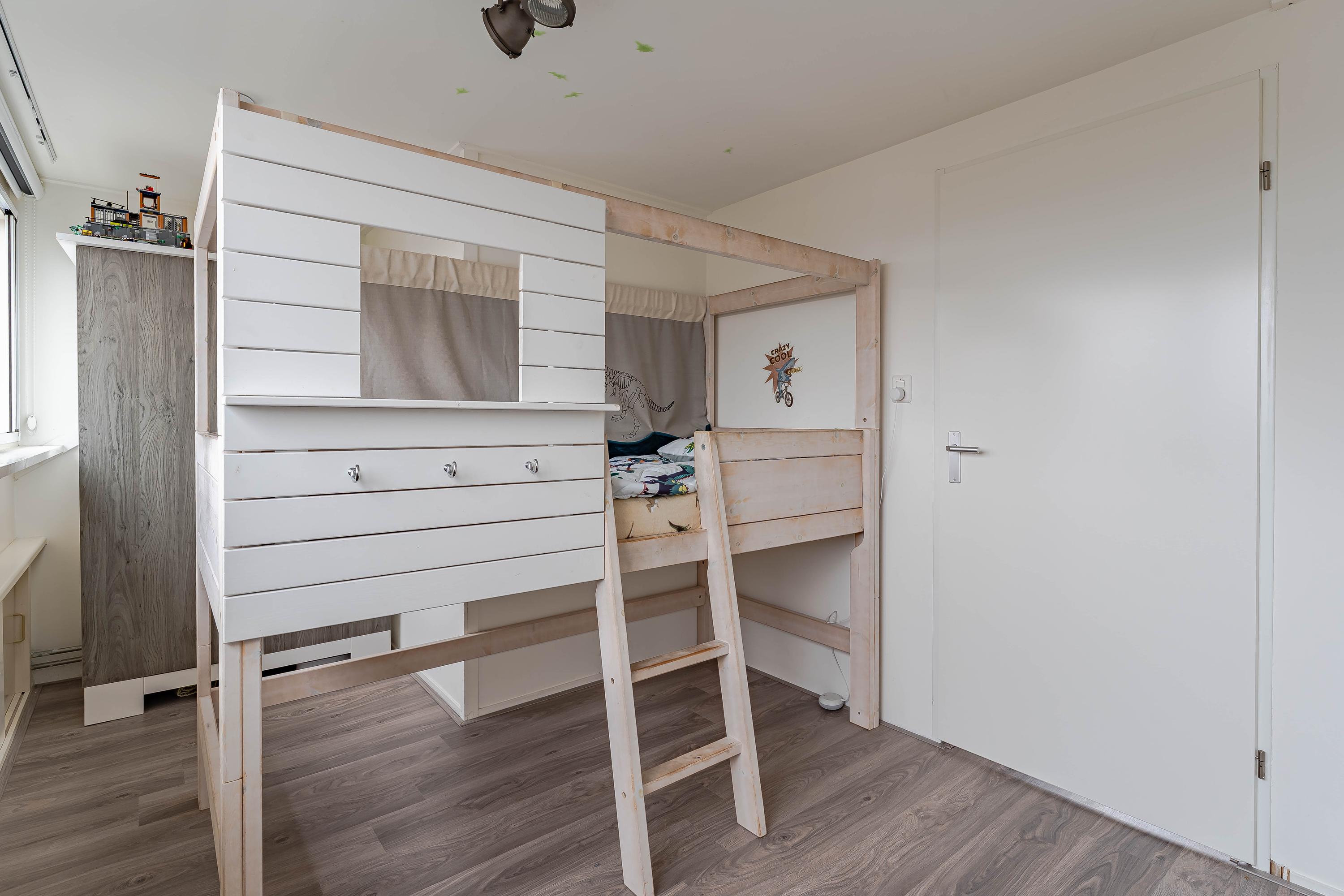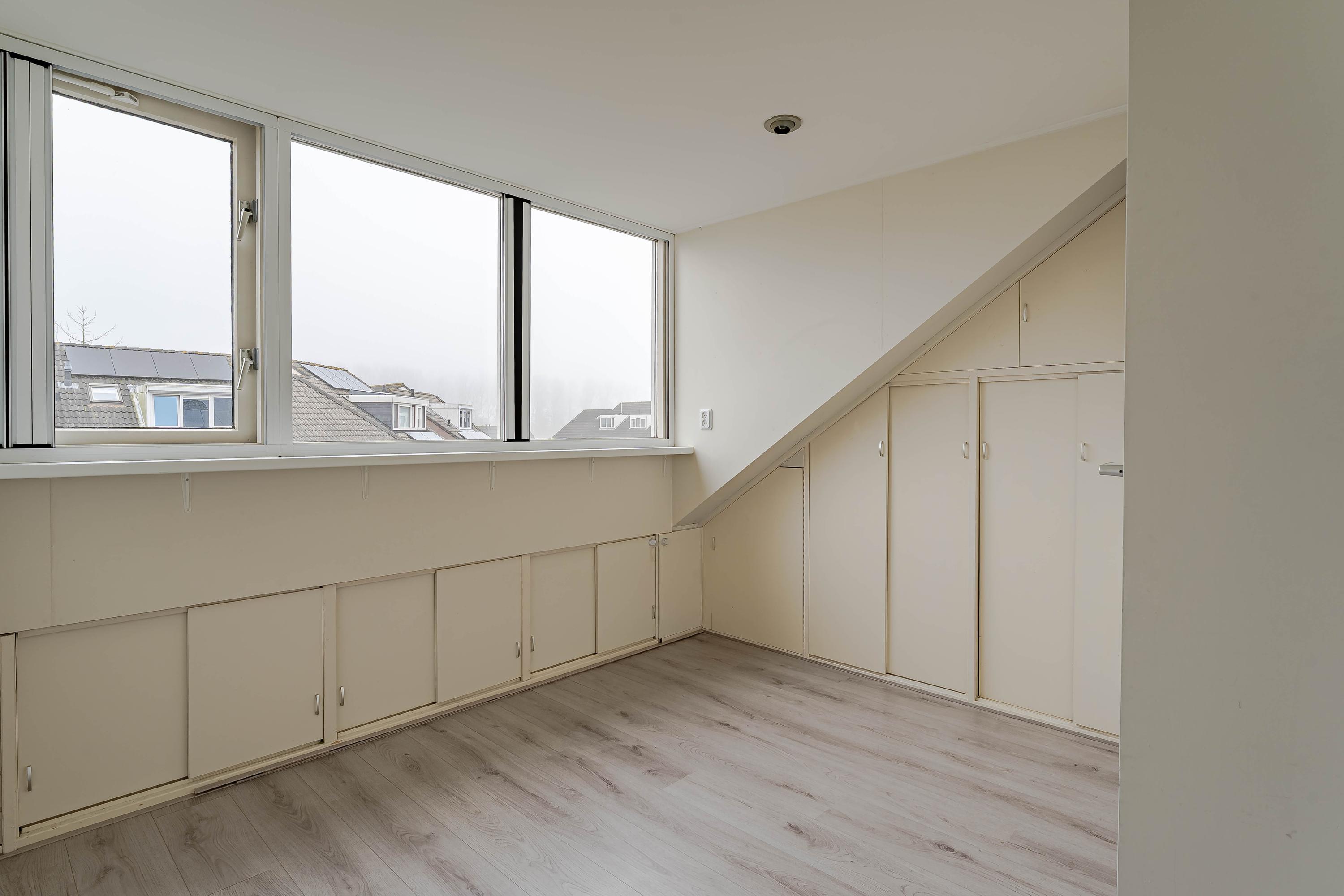 De slaapkamer aan de achterzijde waren voorheen twee kamers waardoor dit een fijne ruime kamer is geworden. De slaapkamer aan de voorzijde is ook van prima formaat en is voorzien van een vaste kastenwand.
