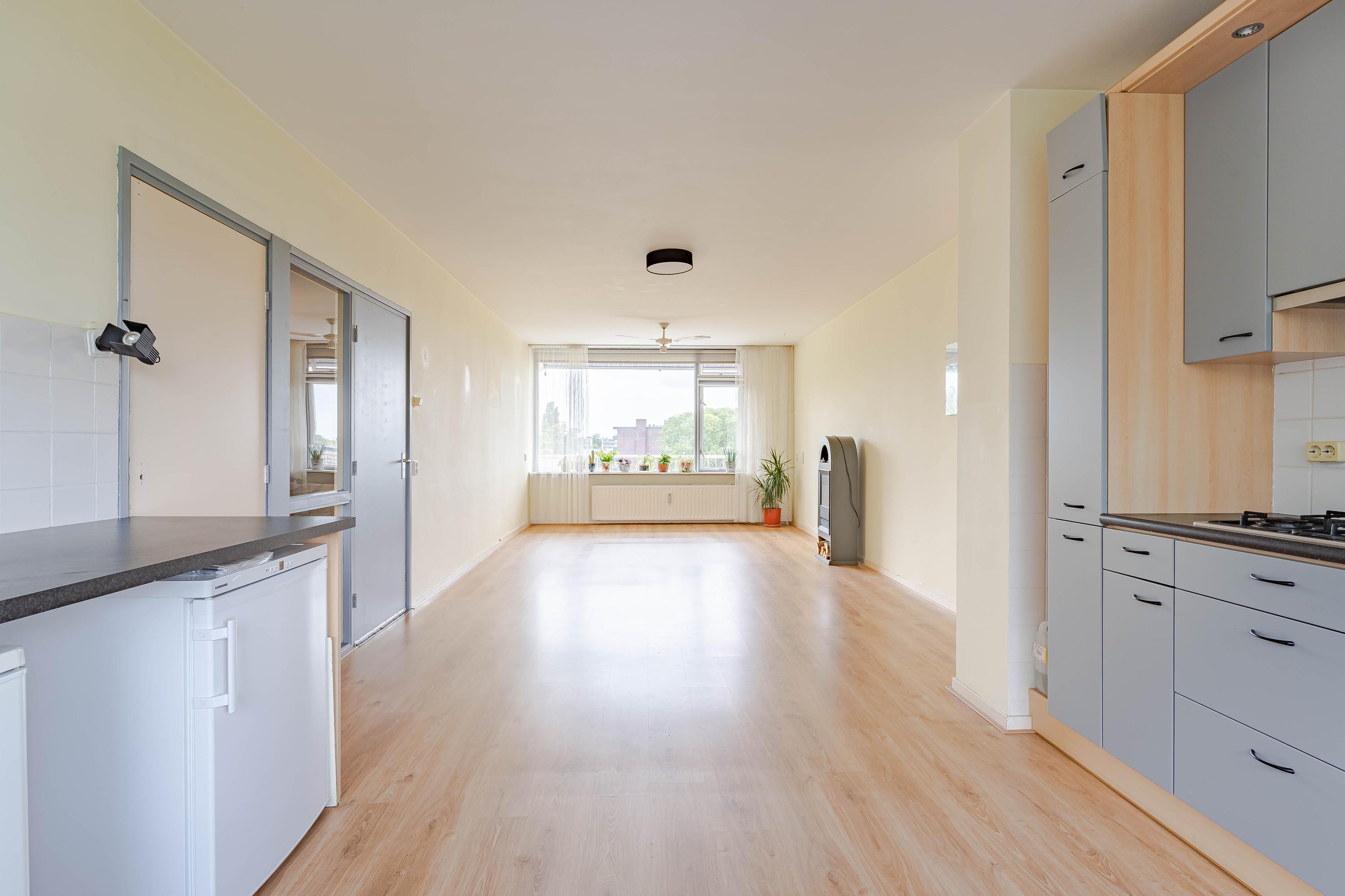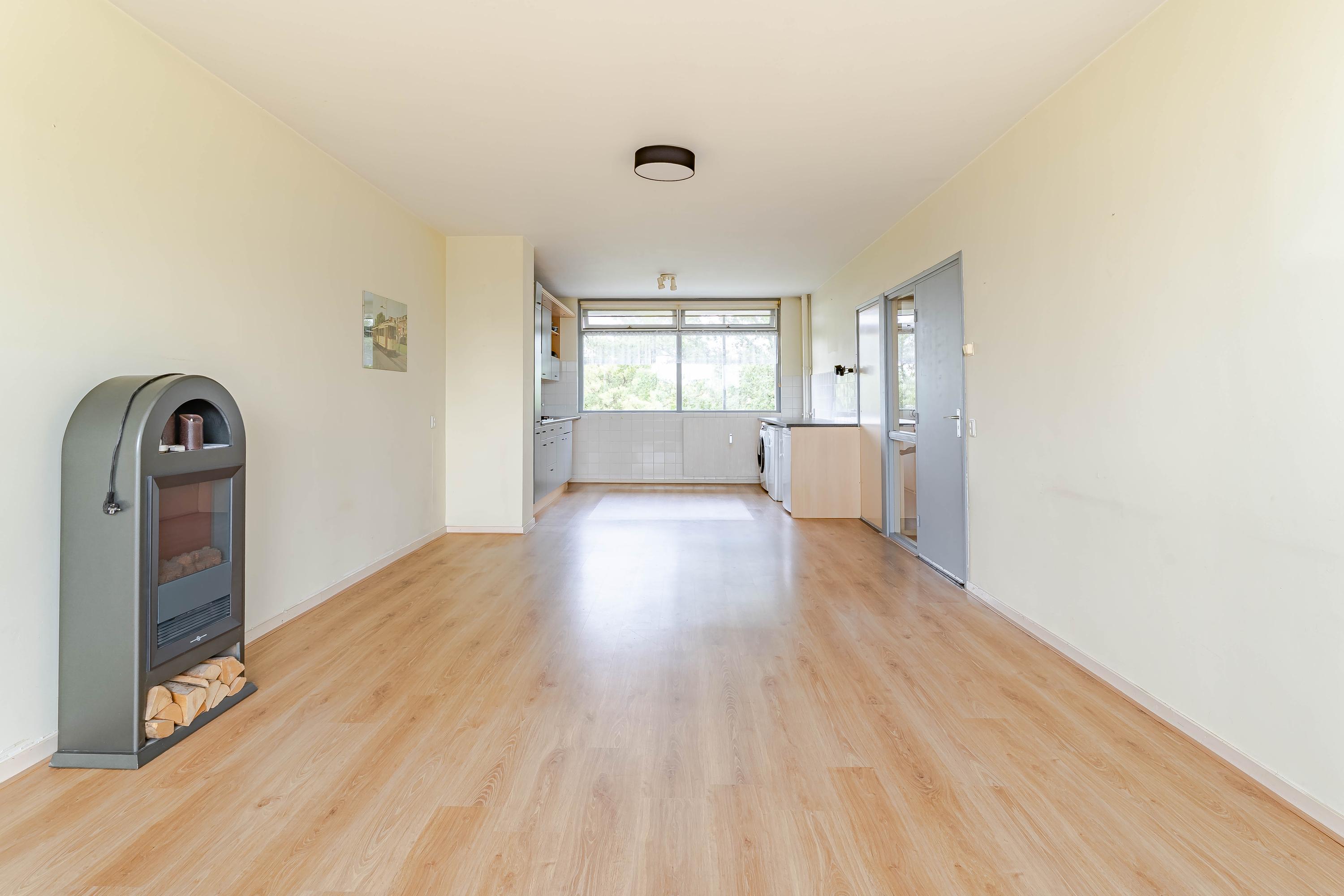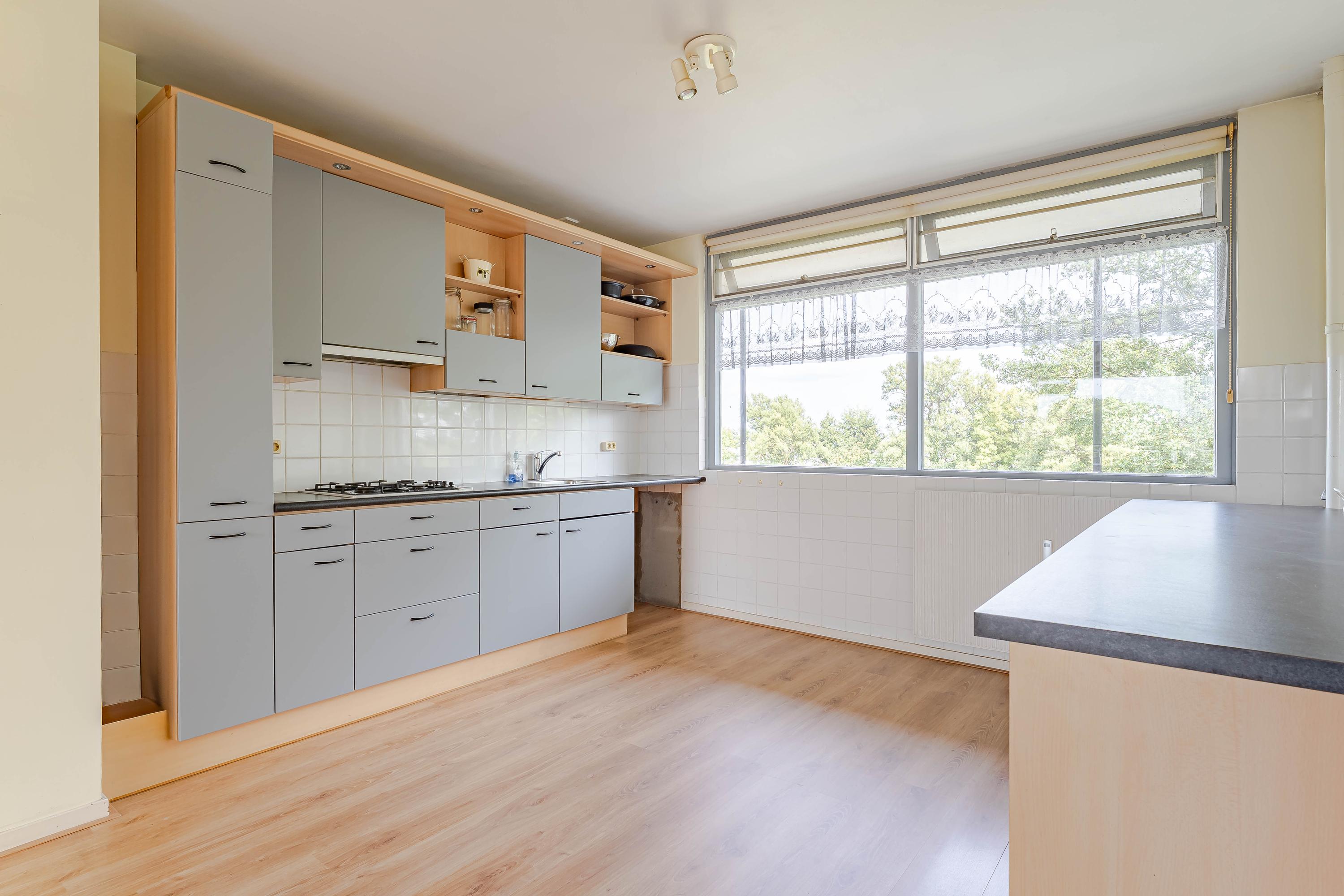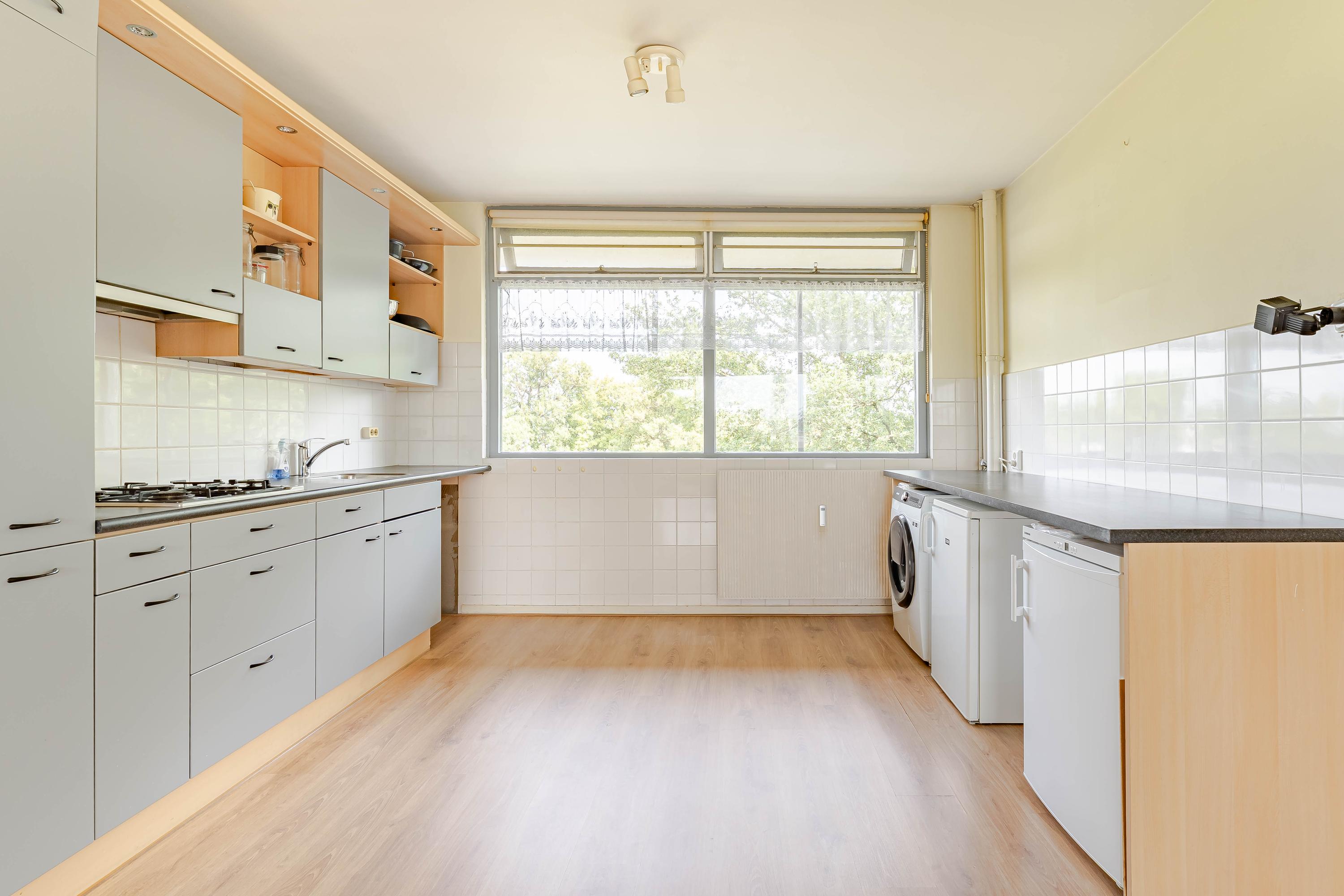 De ruime keuken met veel daglicht is voorzien van een gaskookplaat, afzuigkap en de aansluiting voor een vaatwasser is aanwezig. Aan de andere kant is hetzelfde aanrechtblad geplaatst met daaronder de aansluitingen voor de wasmachine en droger. De lichte en ruime woonkamer heeft mooi uitzicht over Waddinxveen.