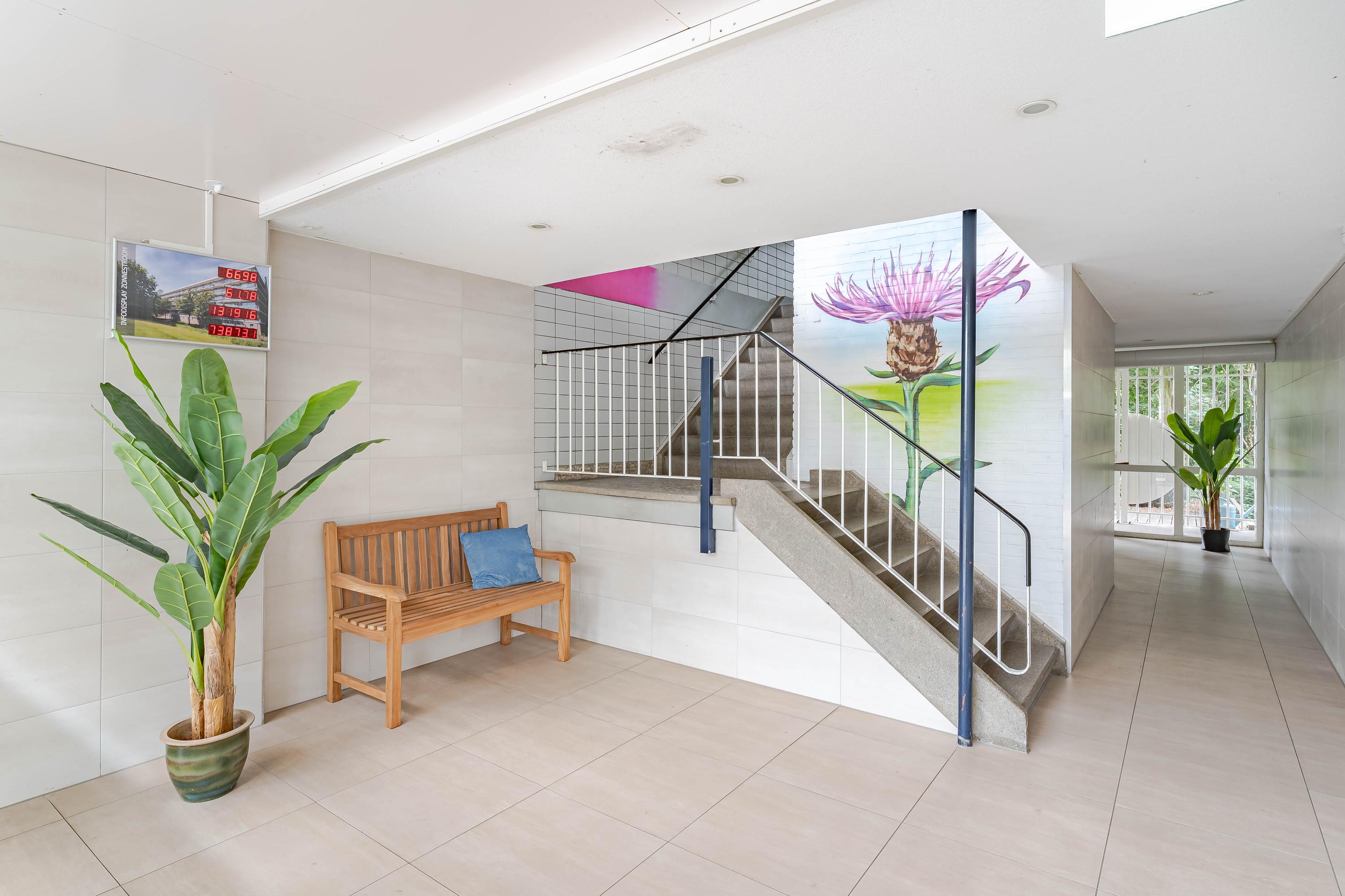 Via de gezamenlijke en afgesloten entree met intercom zijn de bergingen, het trappenhuis en de lift bereikbaar. Aan de voorzijde is er voldoende parkeergelegenheid op het ruime parkeerterrein.
