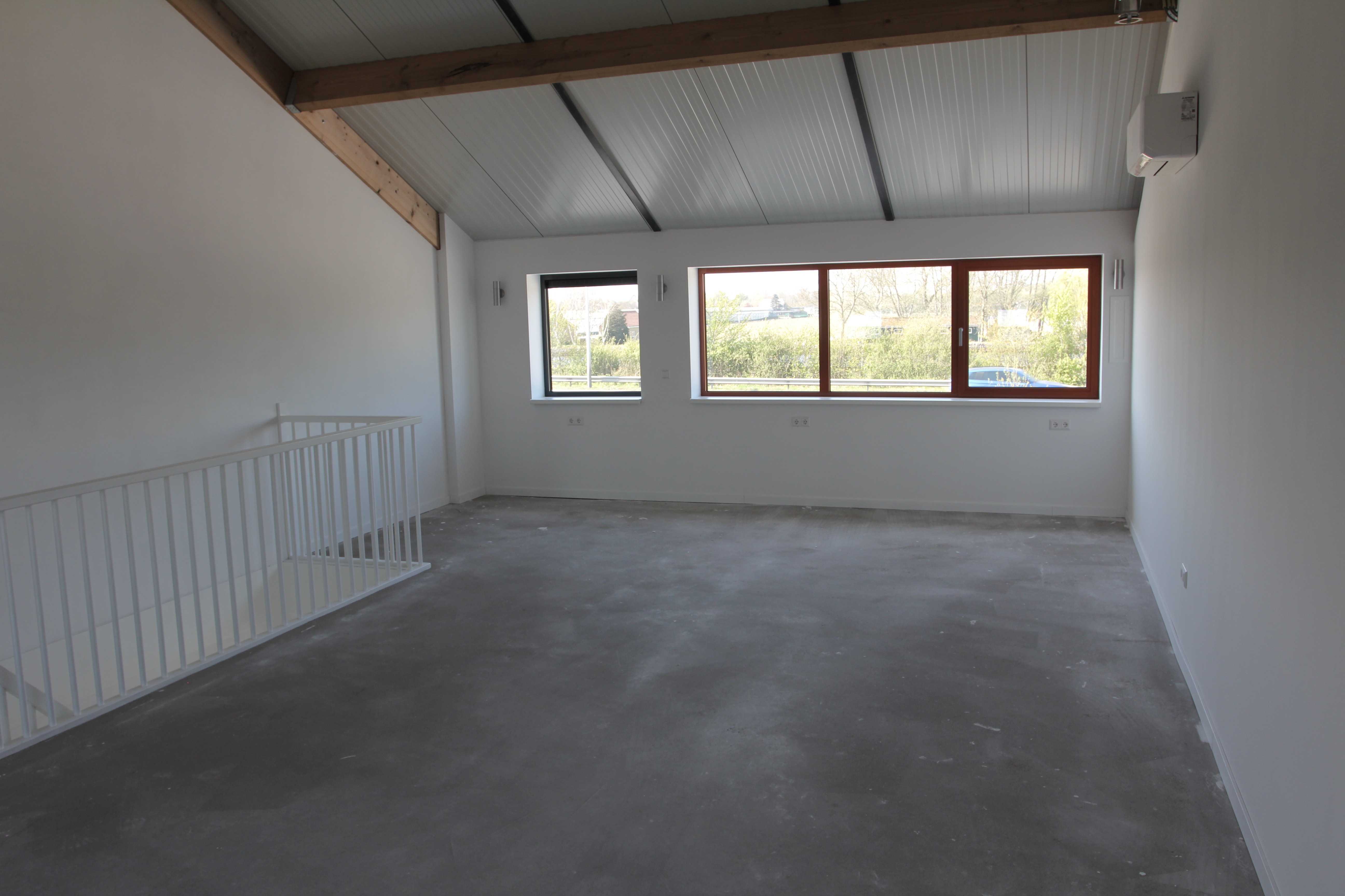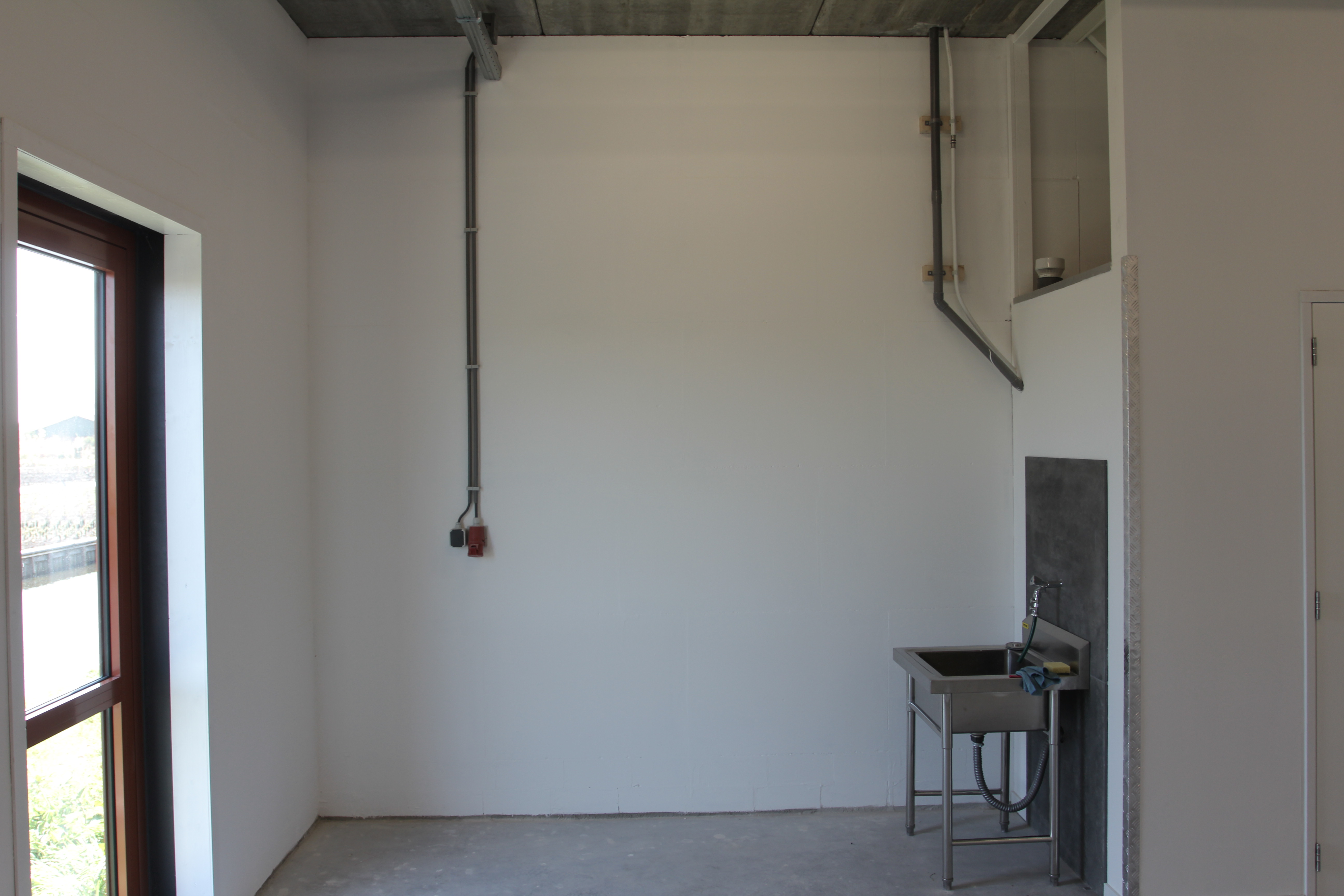 Ook op de 1e verdieping is er een mooie ruimte met wand-/plafondverlichting en een keukenblok met warm/koud water, koelkast en magnetron. Uitermate geschikt voor kantoor of een kantine.