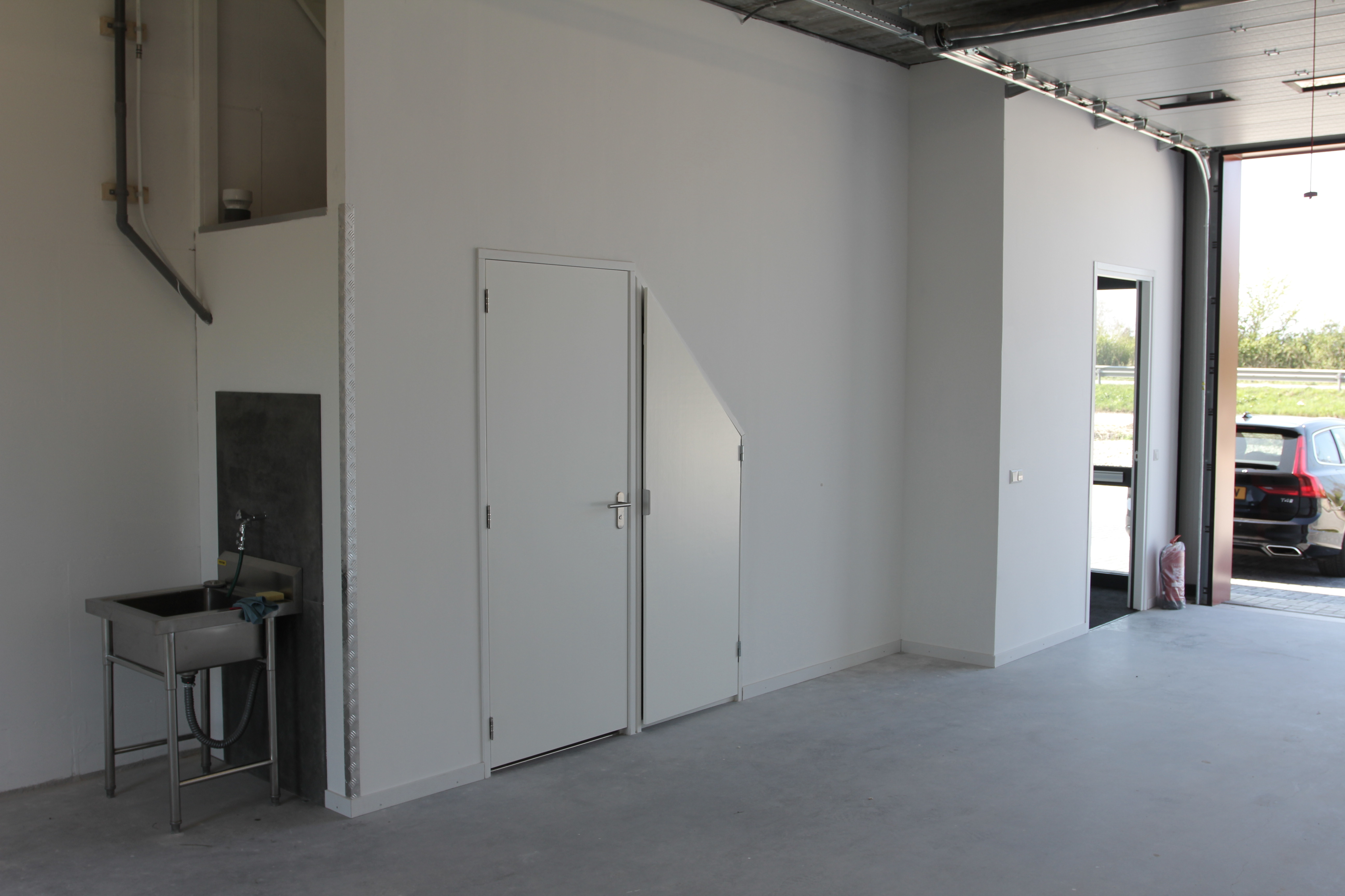 Binnenkomst middels de elektrische op afstand bedienbare overheaddeur of de loopdeur in de hal met meterkast (inclusief krachtstroom) en trapopgang. De bedrijfsruimte is geschikt voor diverse doeleinden en beschikt over een uitstortgootsteen, trapkast en modern toilet met fonteintje. Aan de achterzijde kan een buitenruimte gecreëerd worden.