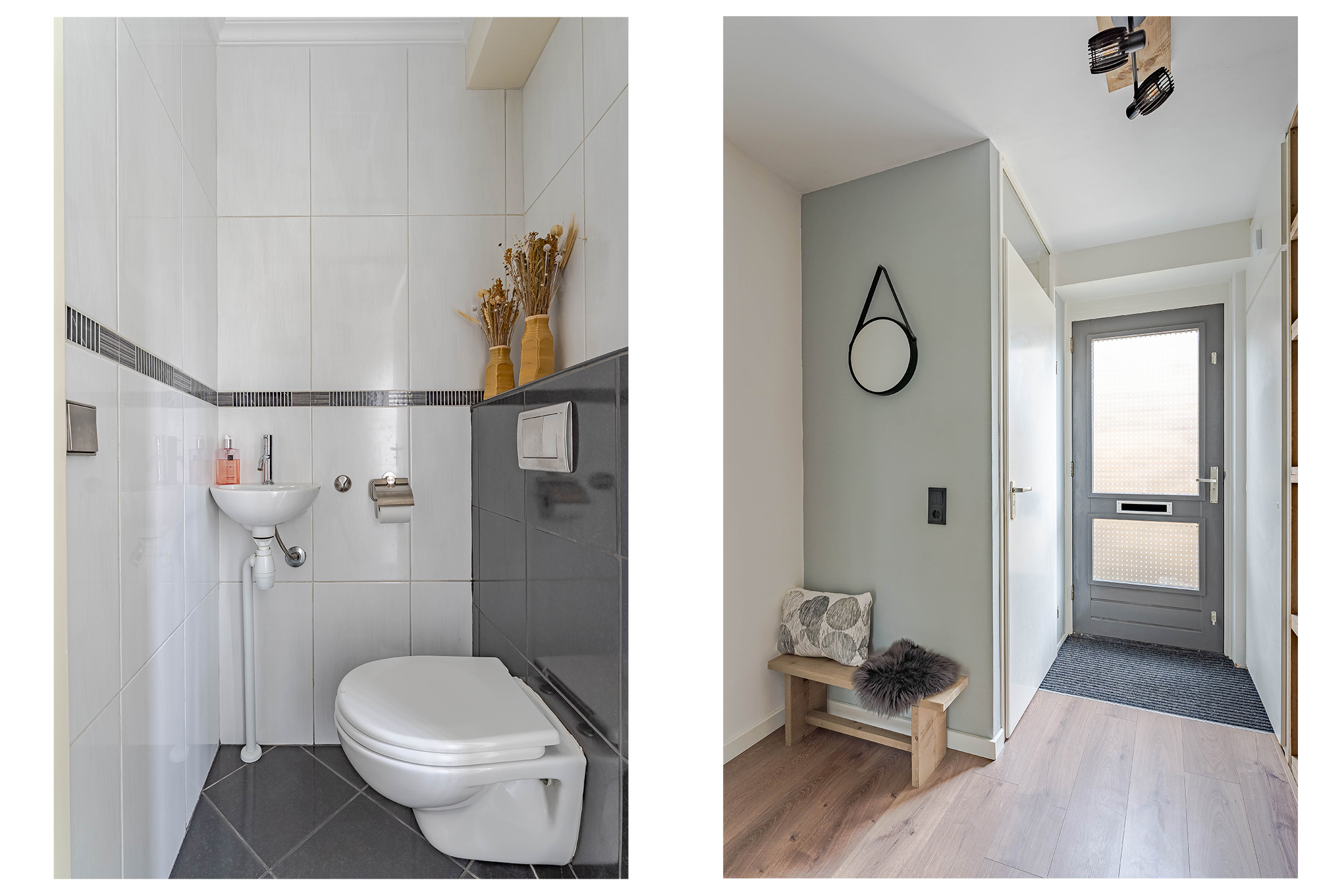 Via de hal/entree betreedt u de woning. Hier vindt u het toilet met fonteintje, de meterkast en de trapopgang naar de eerste verdieping.