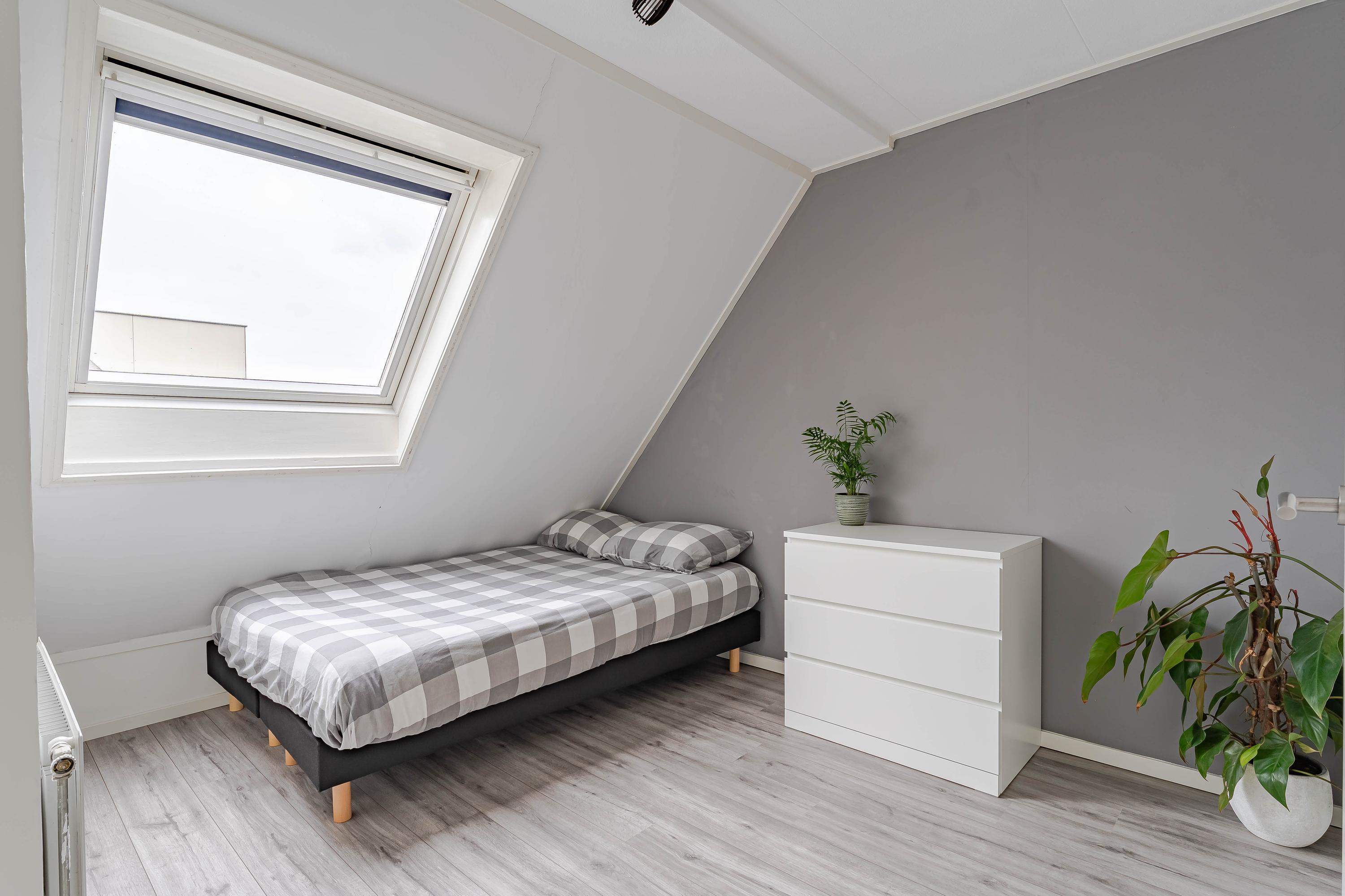 Via de overloop heeft u toegang tot een ruime vliering, ideaal voor extra opslag. Hier vindt u ook de recent vernieuwde c.v.-ketel (Atag, bouwjaar 2024) en de mechanische ventilatiebox.