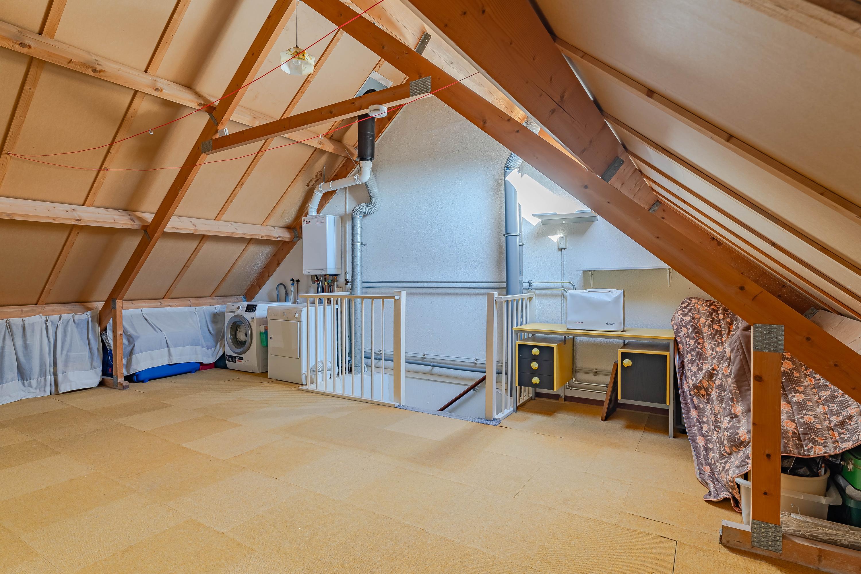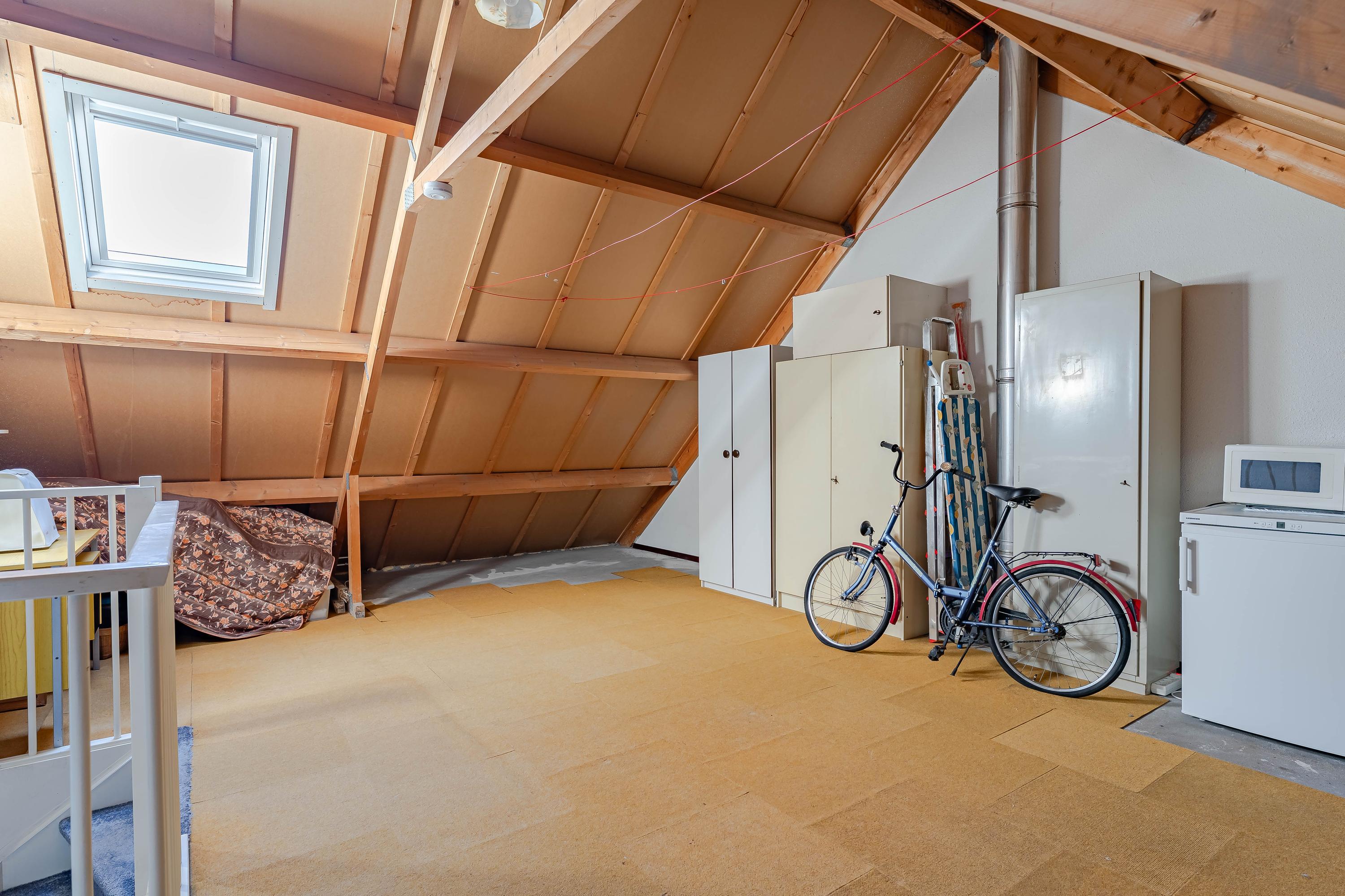 Een open ruimte met mogelijkheden! Op dit moment in gebruik als bergzolder maar de mogelijkheid is er om (met toevoegen van één of twee dakkapellen) hier meerdere slaapkamers te realiseren. Het dakraam is vernieuwd en ook de HR combiketel is vervangen in 2018.
