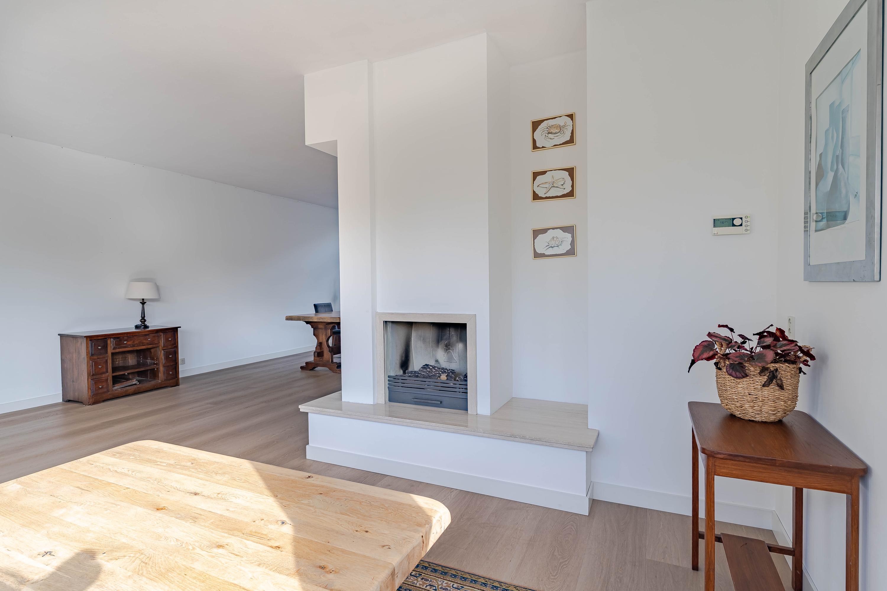 De royale L-vormige woonkamer is speels ingedeeld en heeft een moderne uitstraling. De wanden zijn in 2022 allemaal glad gestuct en er ligt een mooie PVC-vloer. De ruimte heeft een doorzon effect waardoor de lichtinval uitstekend is. Aan de voorzijde van de kamer bevindt zich de zithoek met gaskachel, die voor extra sfeer zorgt.
