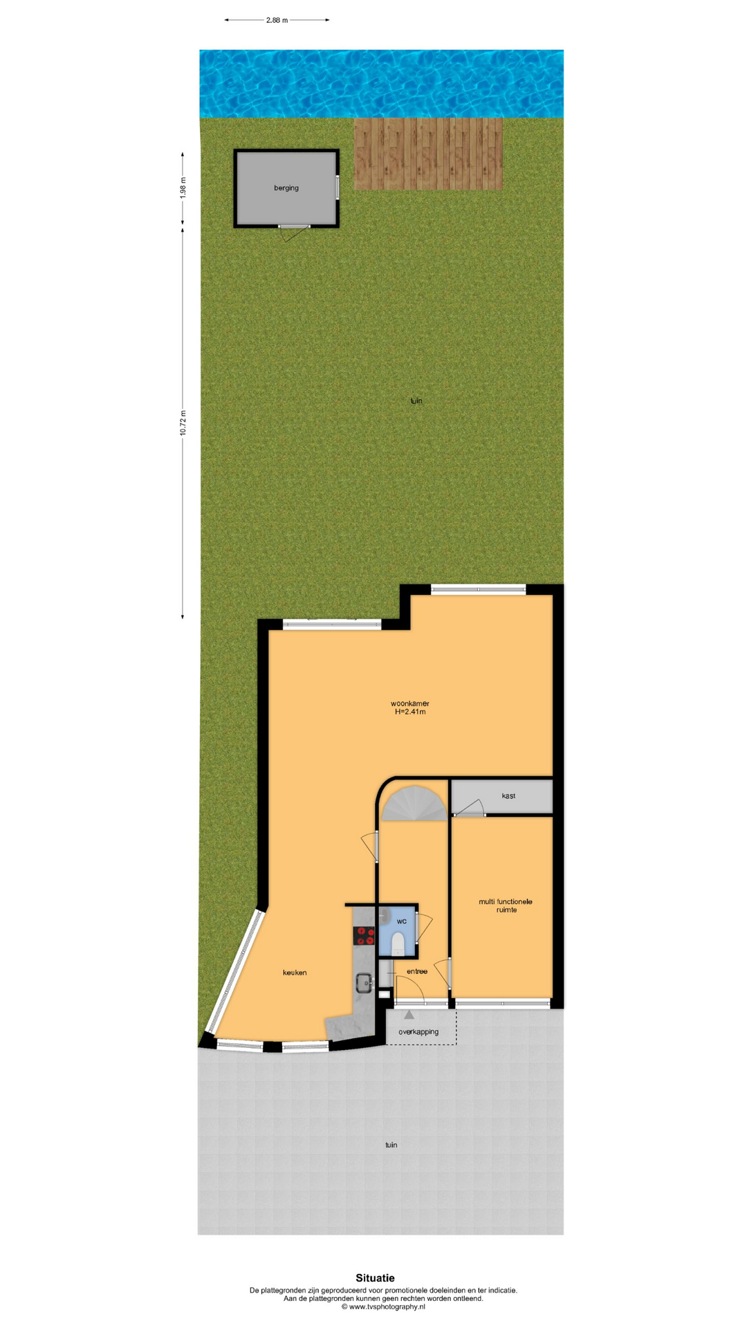 Via de schuifpui aan de achterzijde komt u in de zonnige tuin, waar u kunt genieten van het waterleven. Achterin de tuin staat een praktische houten berging voor het opbergen van tuingereedschap.