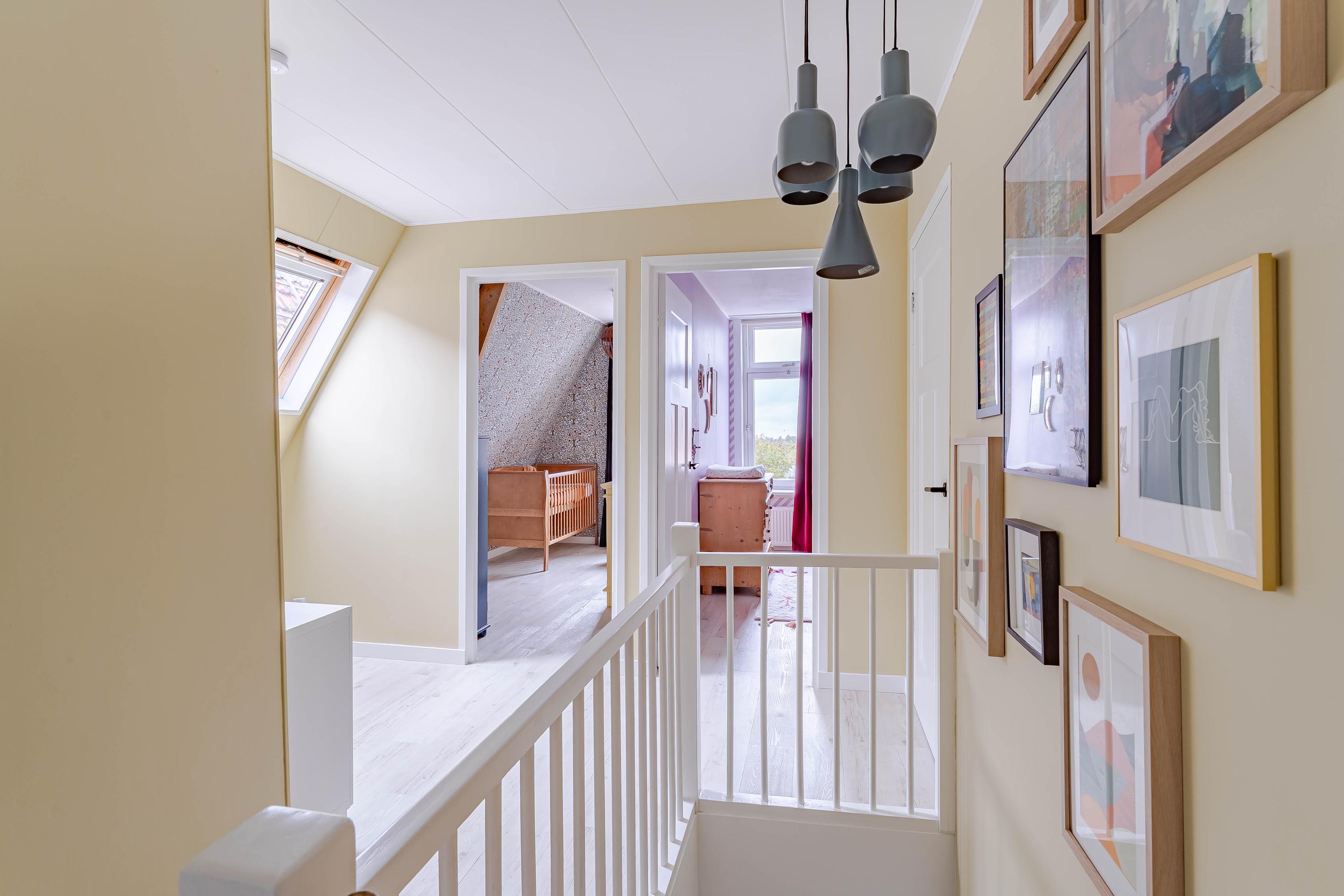 Ruime overloop met toegang tot de slaapkamers, het toilet en de badkamer. Deze gehele verdieping (behalve de badkamer) is in 2023 verbouwd en opnieuw ingedeeld.