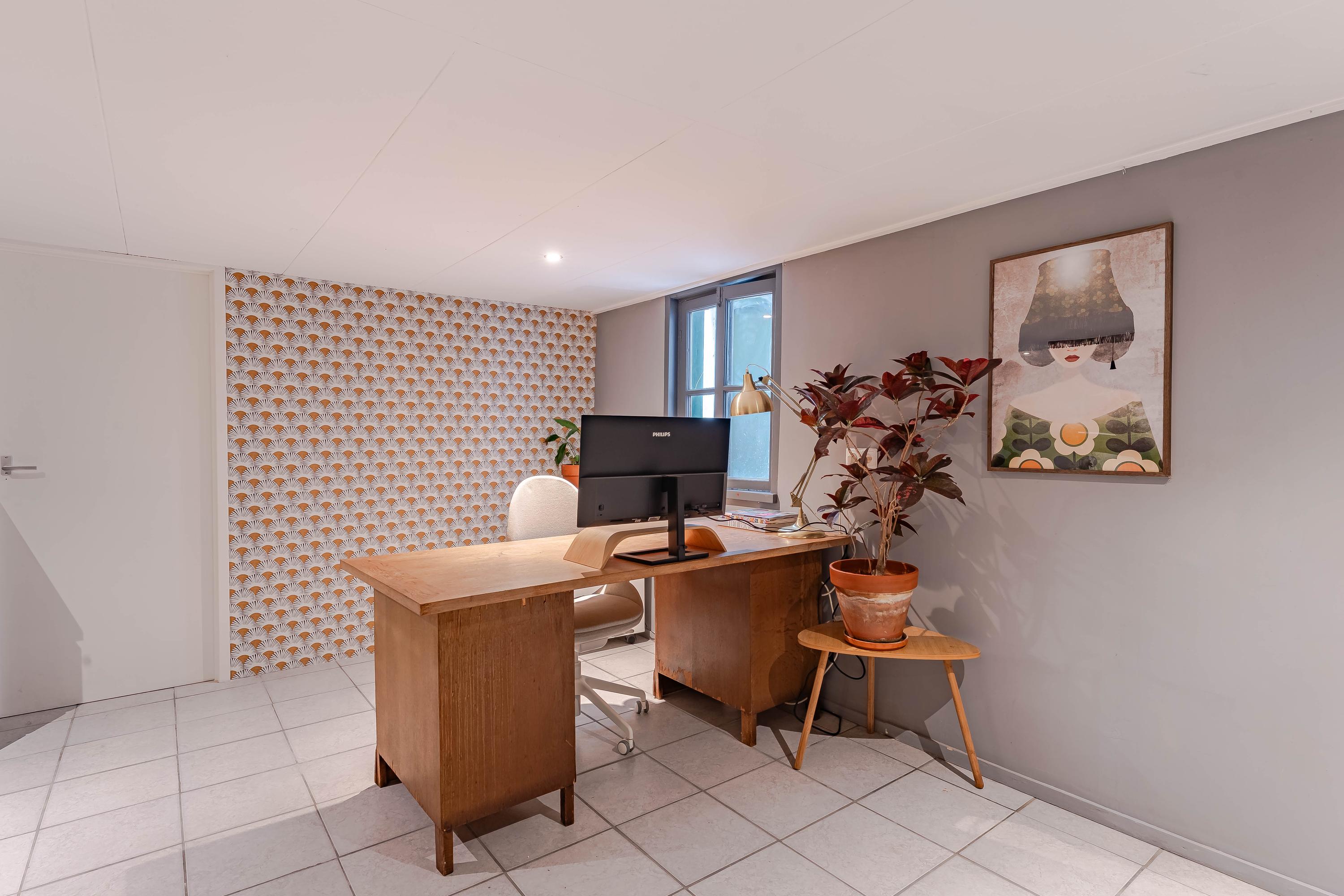 Het souterrain is een fijne extra woonruimte welke voor allerlei doeleinden kan worden gebruikt. Deze ruimte is nu in gebruik als kantoor en wasruimte. Tevens is hier de CV-ketel opgesteld (Nefit 2017). Verder heeft u vanaf hier toegang tot de ruime berging en schuur.