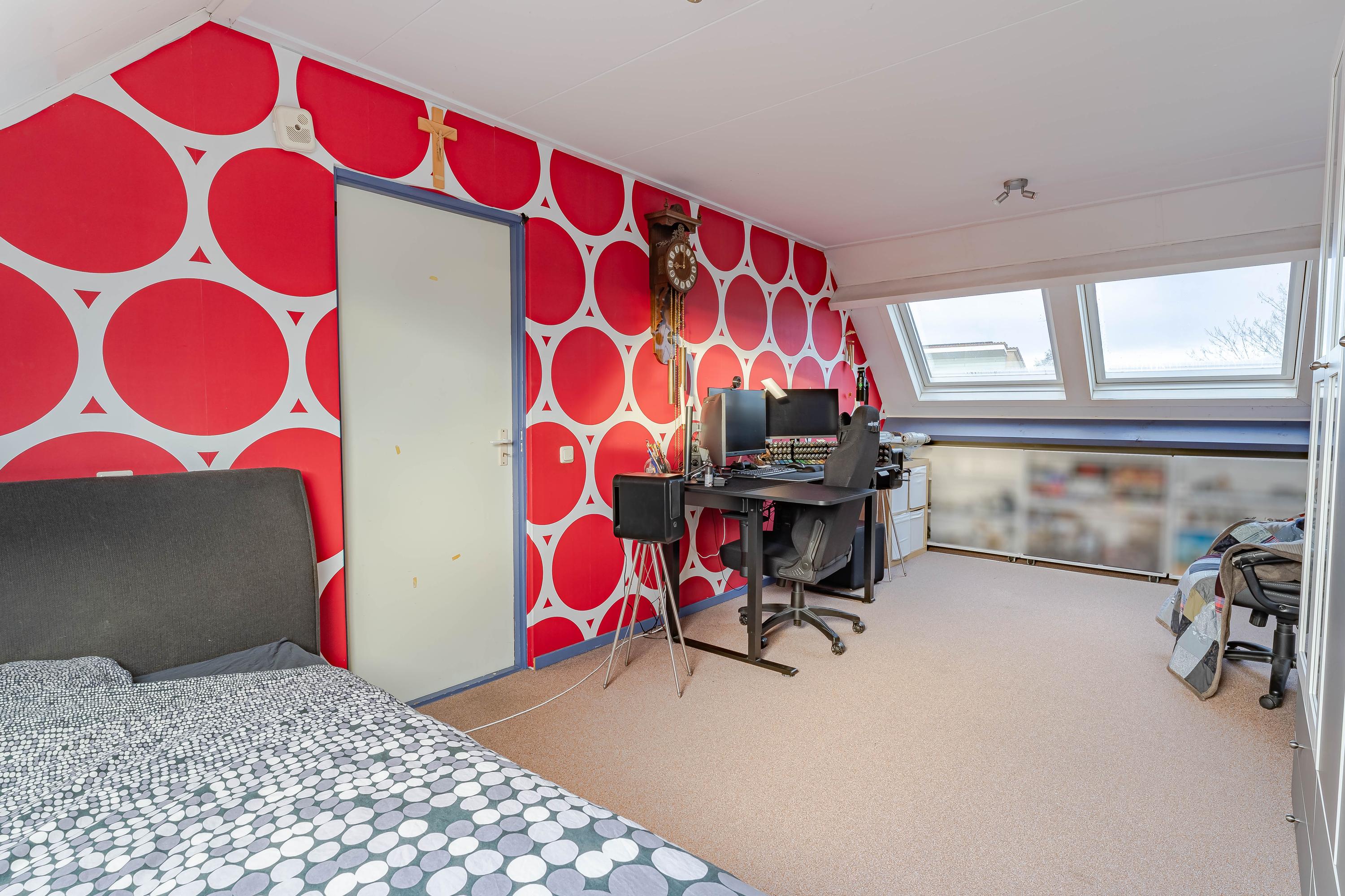 De slaapkamer is ruim en voorzien van drie grote dakramen welke zorgen voor veel lichtinval. Komt u een slaapkamer te kort? Dan is er genoeg ruimte om een extra slaapkamer te realiseren.