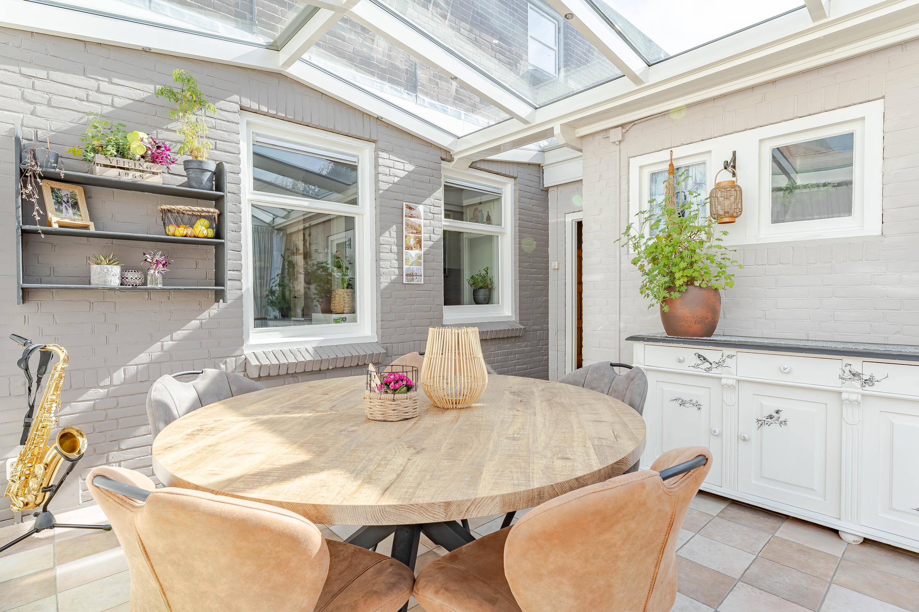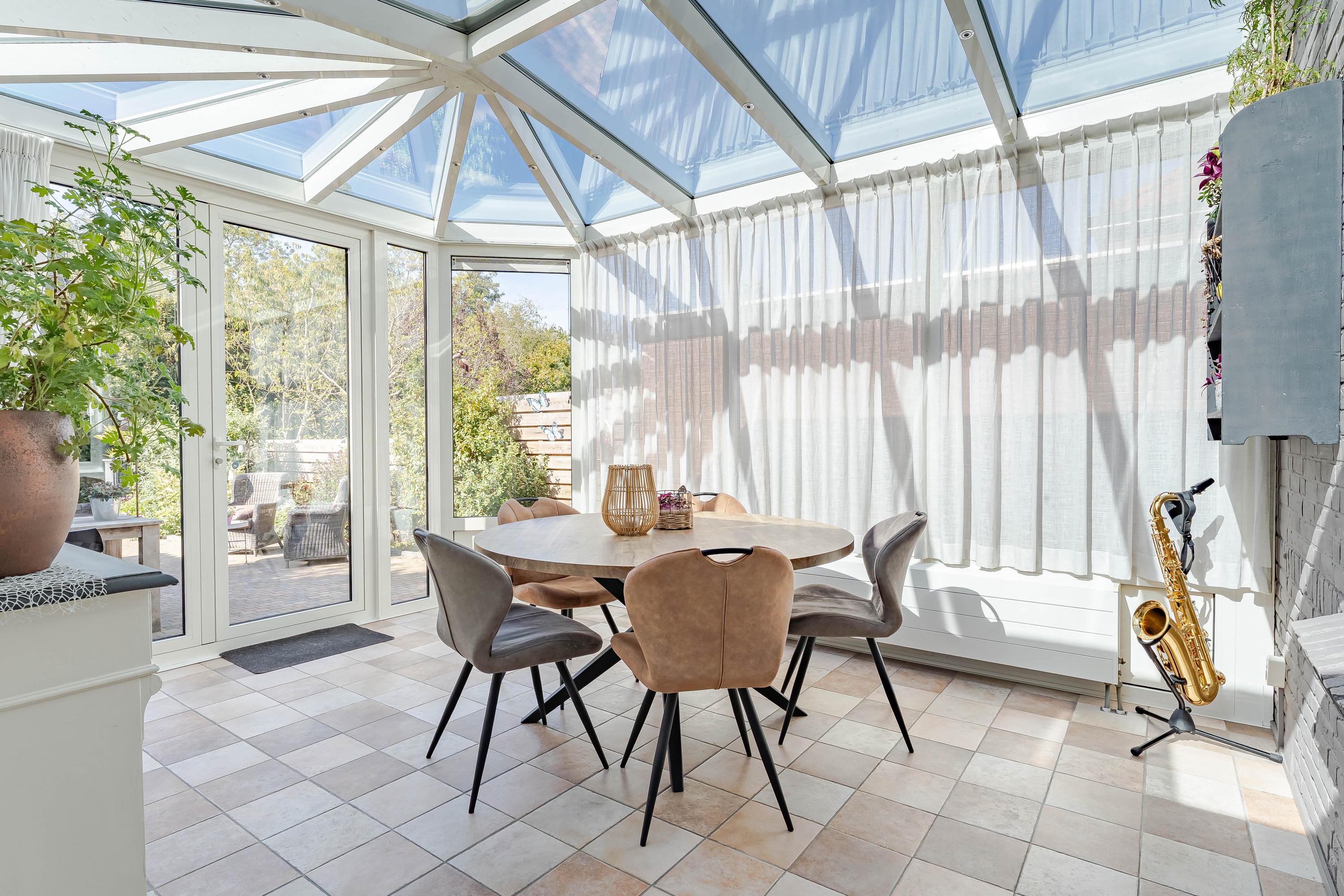 In 2004 hebben de huidige bewoners een serre laten aanbouwen, wat een heerlijk plek! De serre is circa 15 m² en geeft een mooie verbinding met binnen en buiten, het is licht en vroeg in het voorjaar kun je hier al heerlijk van de zon genieten.