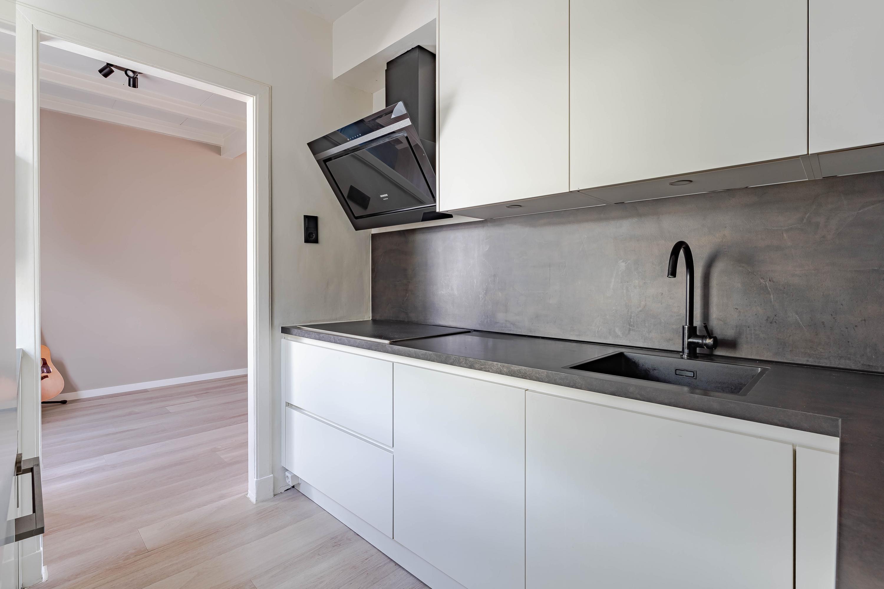 De in 2021 geplaatste keuken is modern en voorzien van een inductiekookplaat, afzuigkap, combi-oven, koel-vriescombinatie, carrousel kast en vaatwasser.