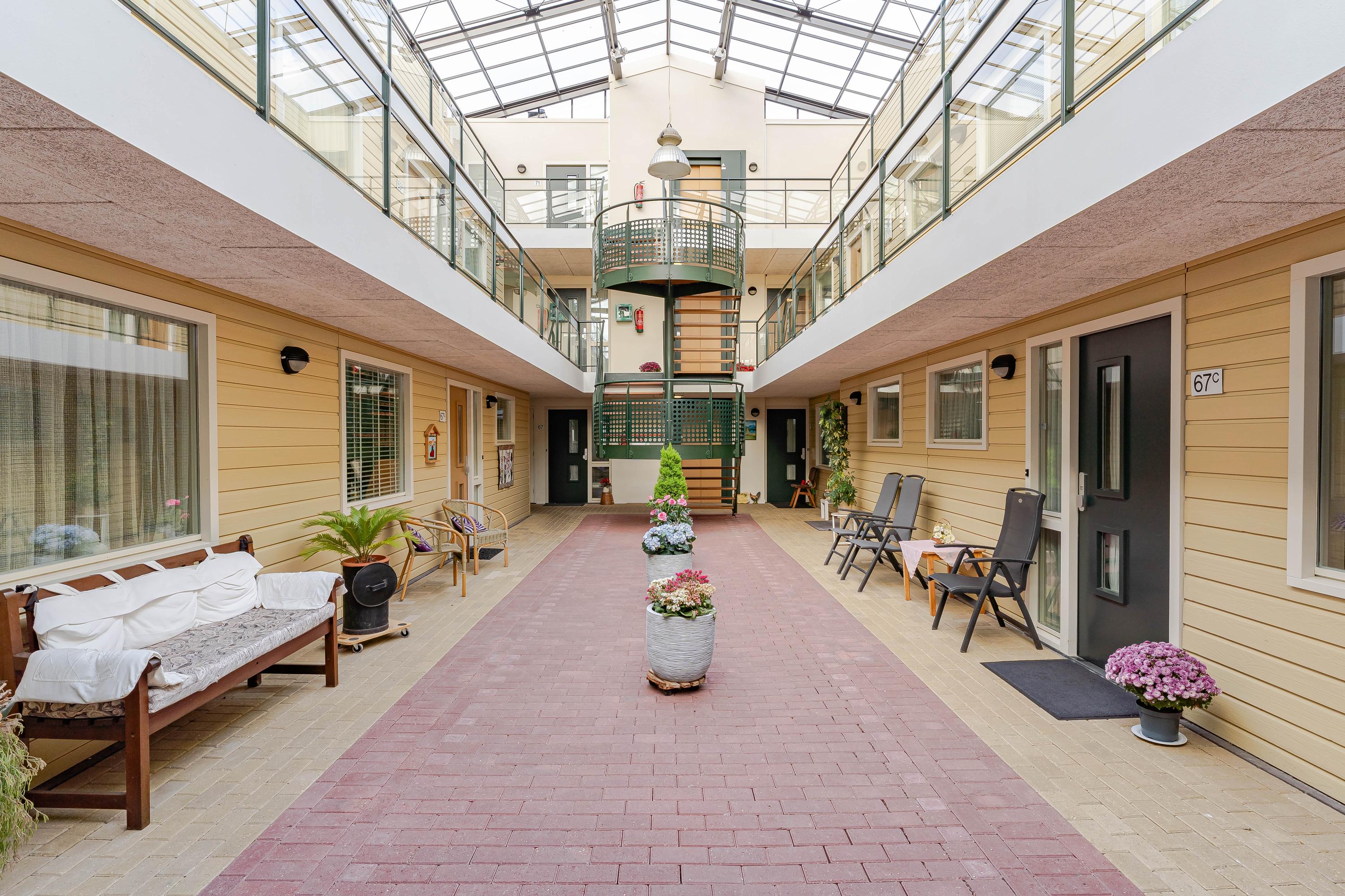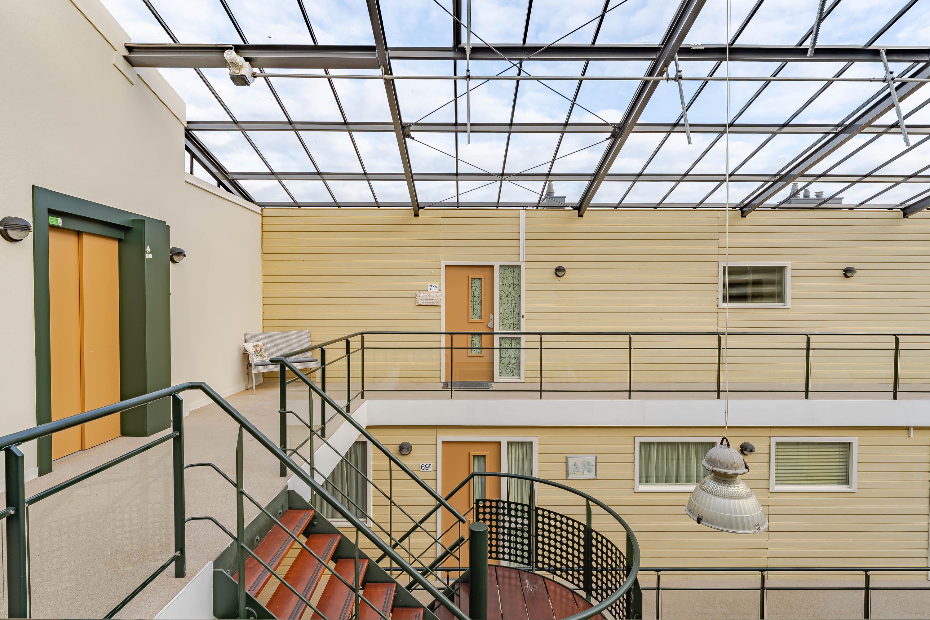 Via de centrale entree komt u bij het atrium waar u door middel van de lift of de trapopgang het op de tweede verdieping gelegen appartement bereikt.