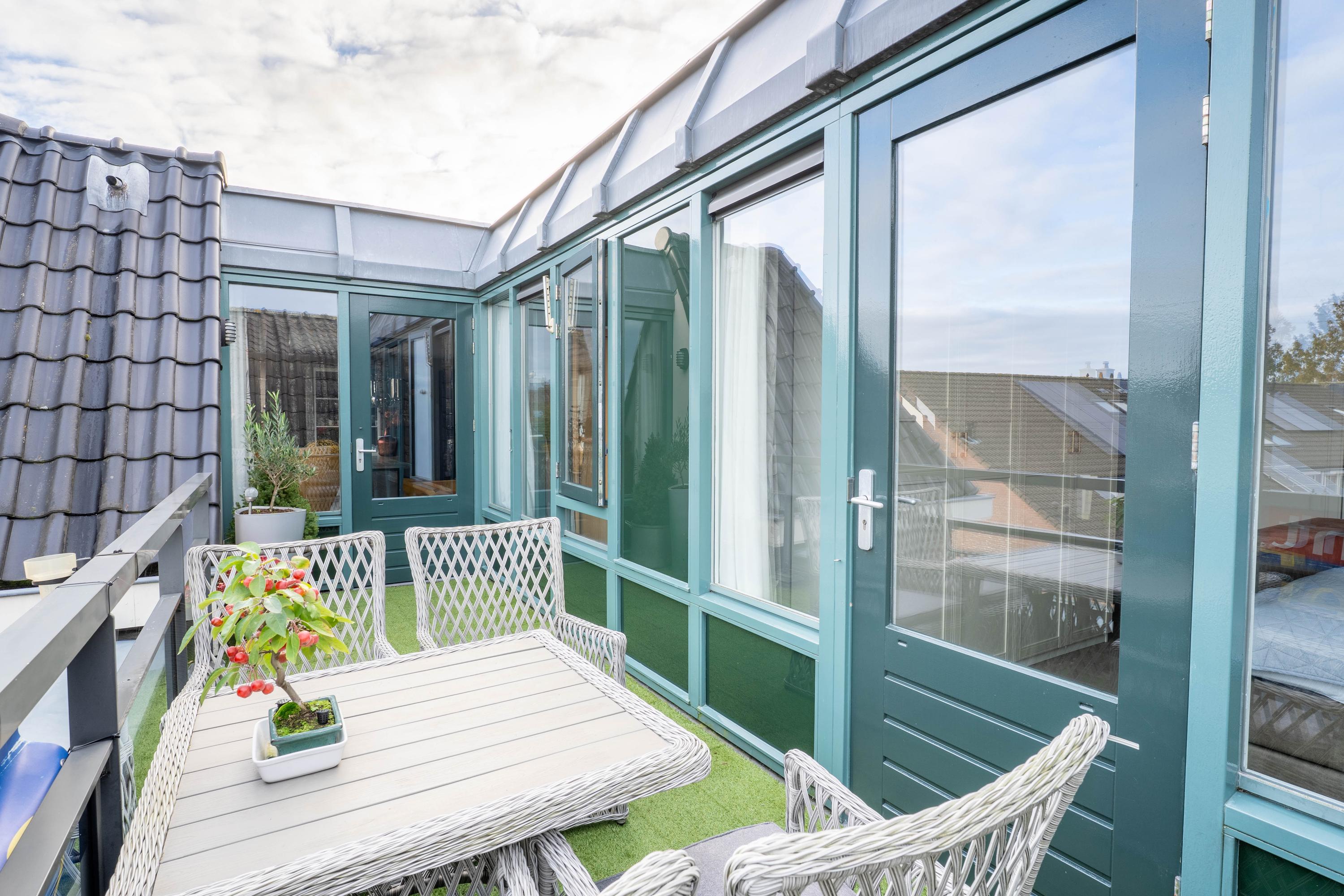 De twee dakterrassen betreedt u via de deuren in de woonkamer en de meest achtergelegen slaapkamer. Uniek; bij dit appartement is de buitenruimte enorm, hier heeft u alle ruimte om van het weer en de omgeving te genieten.