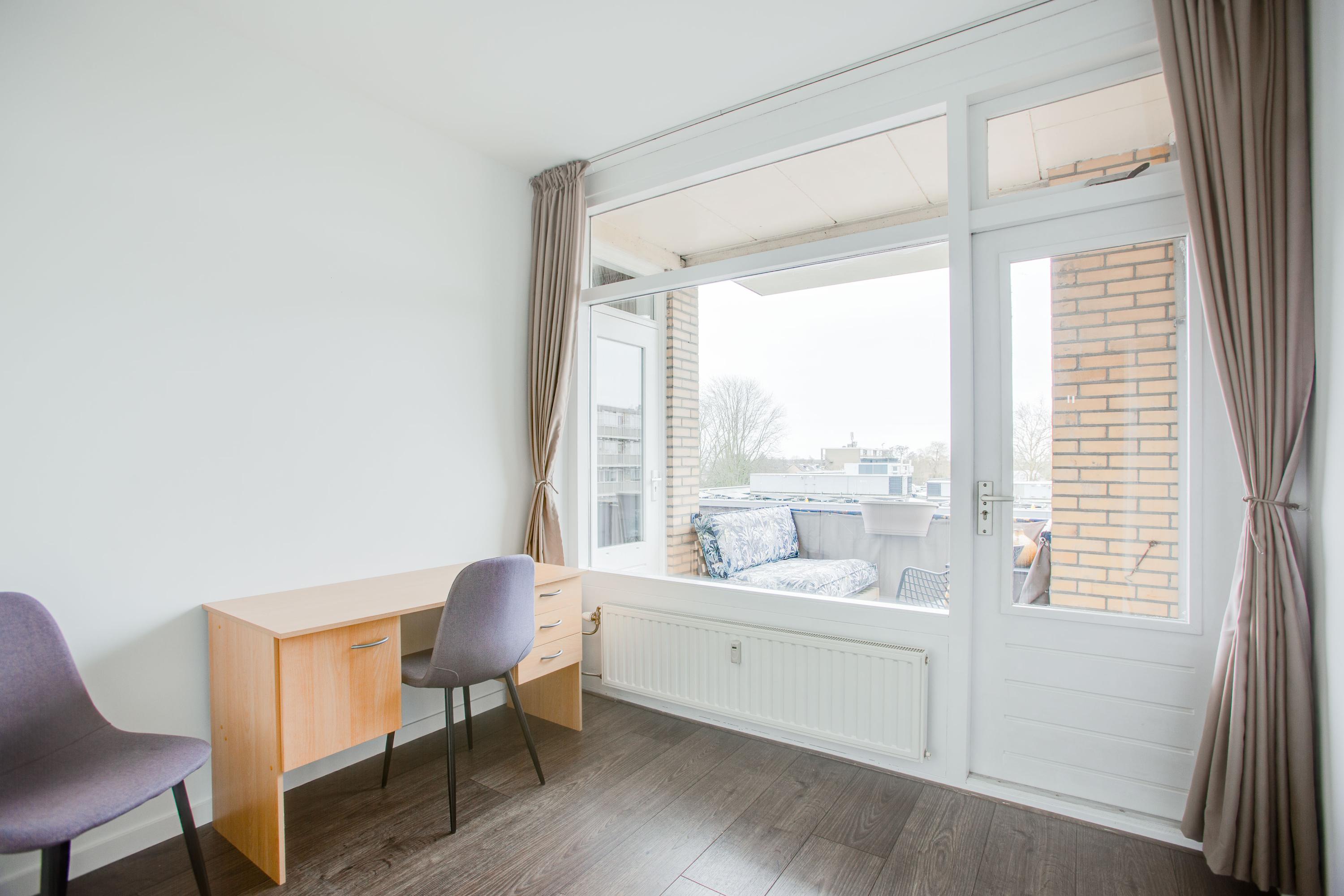 Beide slaapkamers zijn van een mooi formaat, de grote ramen zorgen voor een fijne lichtinval. De op het zuiden gelegen slaapkamer biedt toegang tot een balkon.
