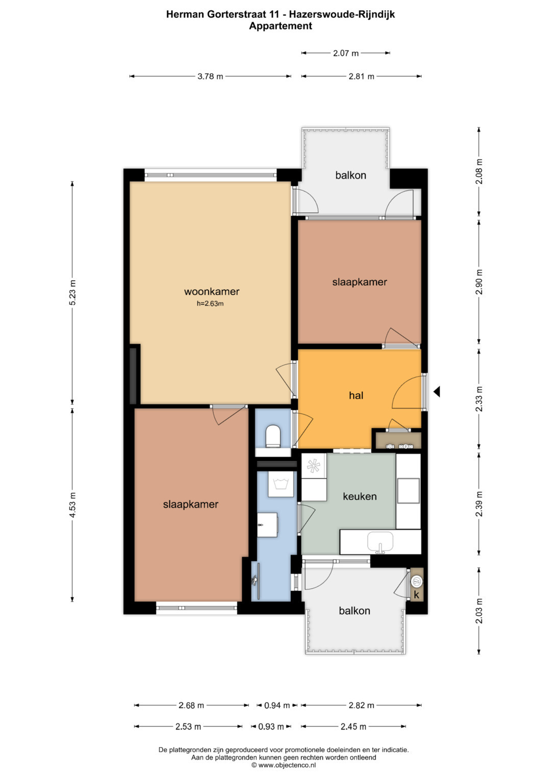 Deze vrijblijvende objectinformatie is met de meeste zorg samengesteld, maar voor de juistheid daarvan kunnen wij geen aansprakelijkheid aanvaarden. Ook kan aan de vermelde gegevens geen enkel recht worden ontleend. Alle informatie is enkel en alleen bedoeld voor de presentatie van het object en niet meer dan een uitnodiging tot het doen van een bod. Eventueel bijgevoegde plattegronden zijn slechts indicatief.