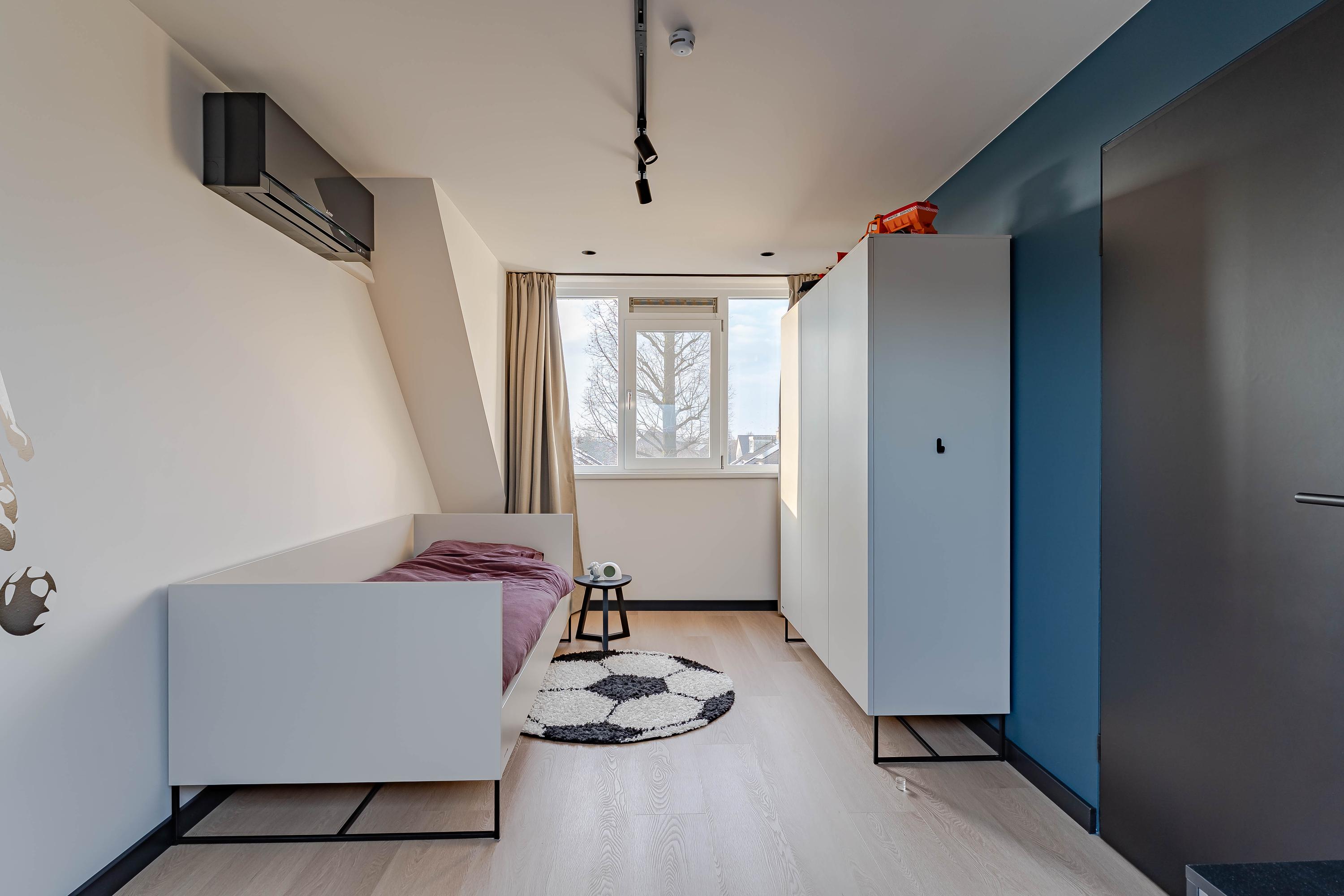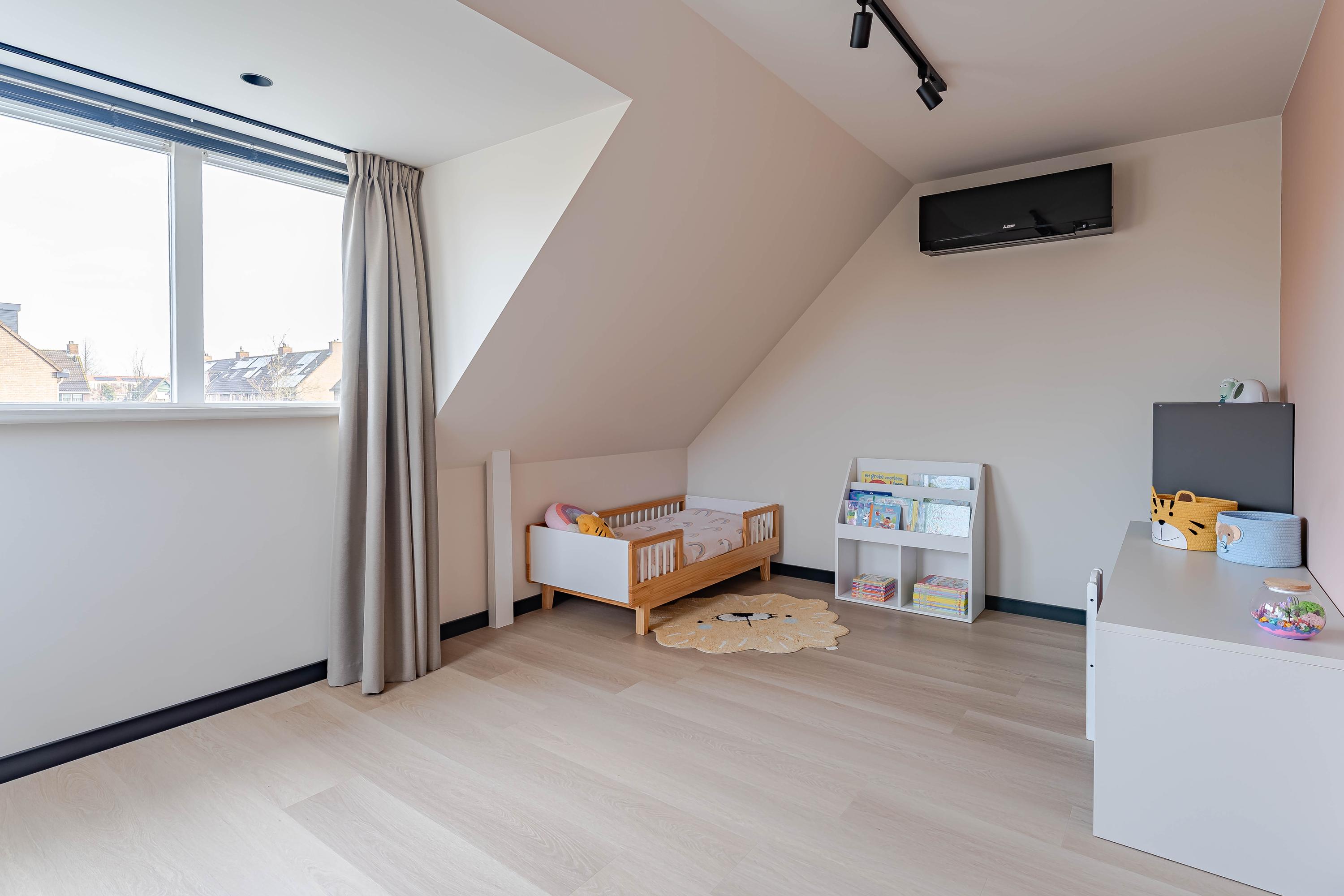 De derde ruime slaapkamer is voorzien van een vernieuwde dakkapel met kunststof kozijnen en een airco (2024).