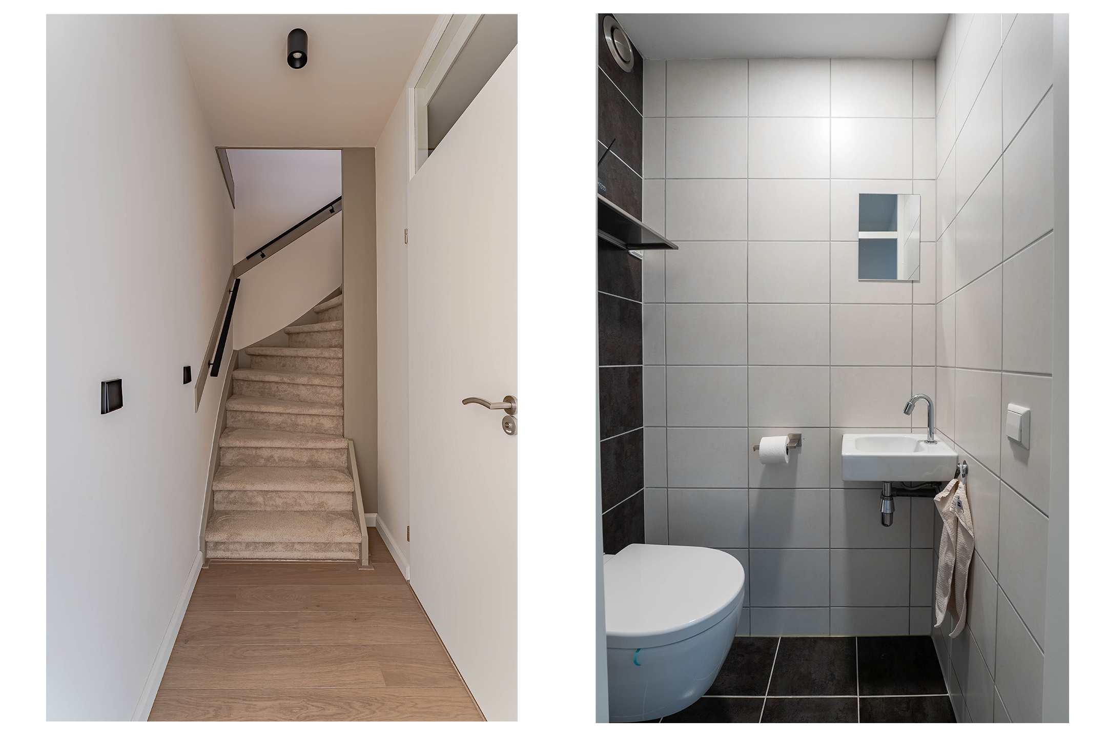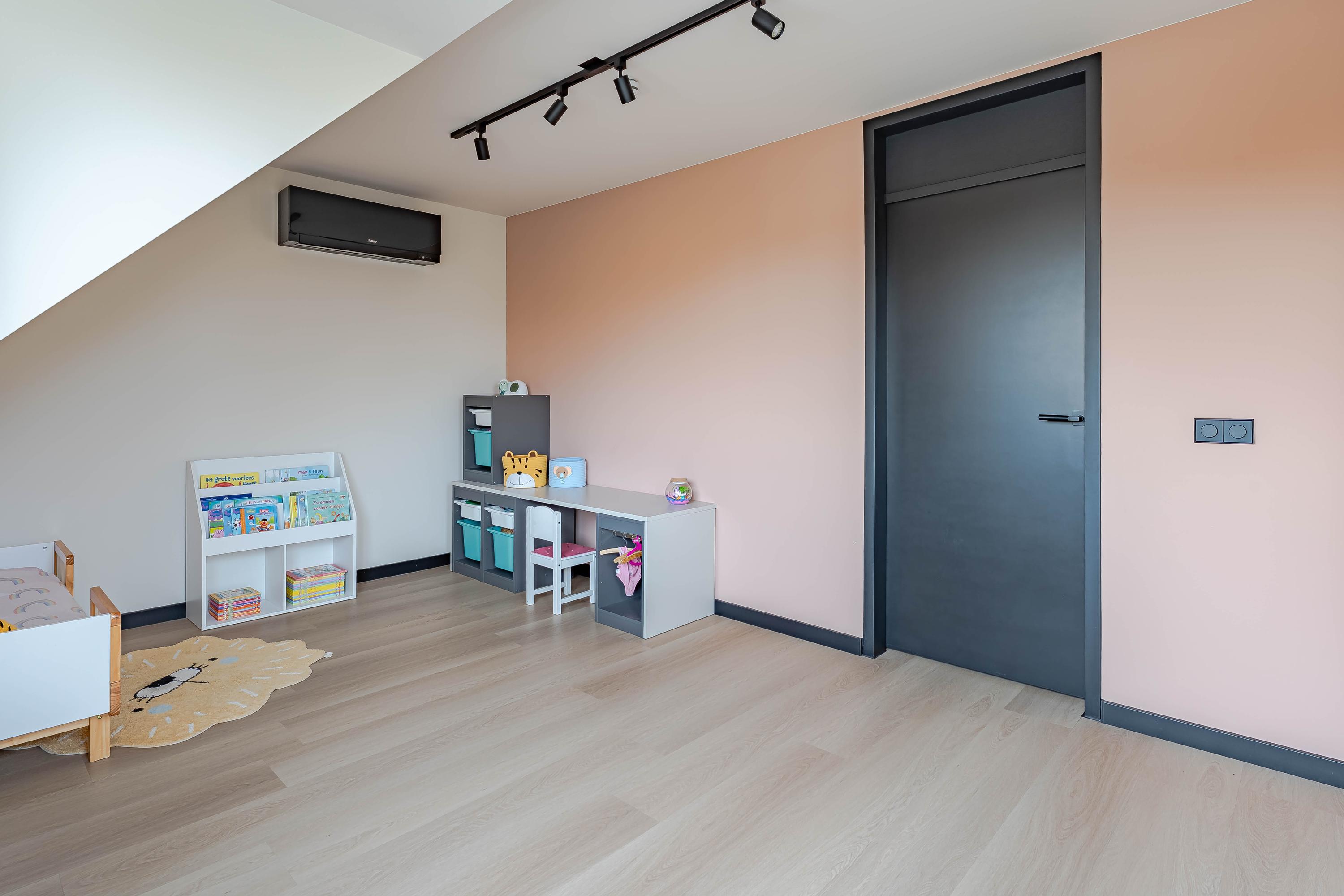 Ook deze verdieping is voorzien van dezelfde doorgelegde pvc vloer en glad gestuukte wanden en plafonds.