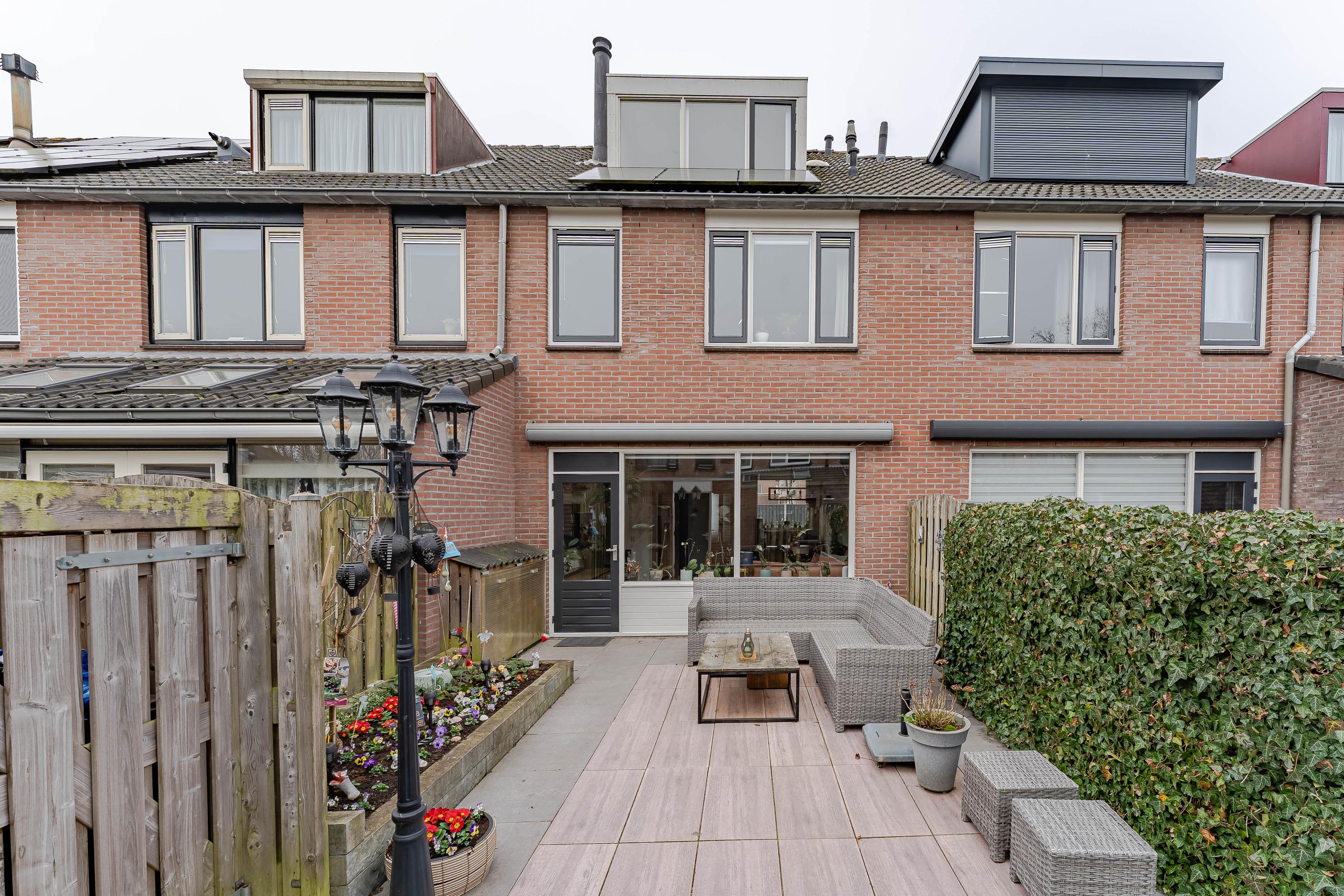 Vanuit de woonkamer is er toegang tot de achtertuin gelegen op het oosten. Door de diepte van de tuin kunt u hier heerlijk van de zon genieten. De tuin is onderhoudsvriendelijk aangelegd en voorzien van een stenen berging en er is een achterom aanwezig.