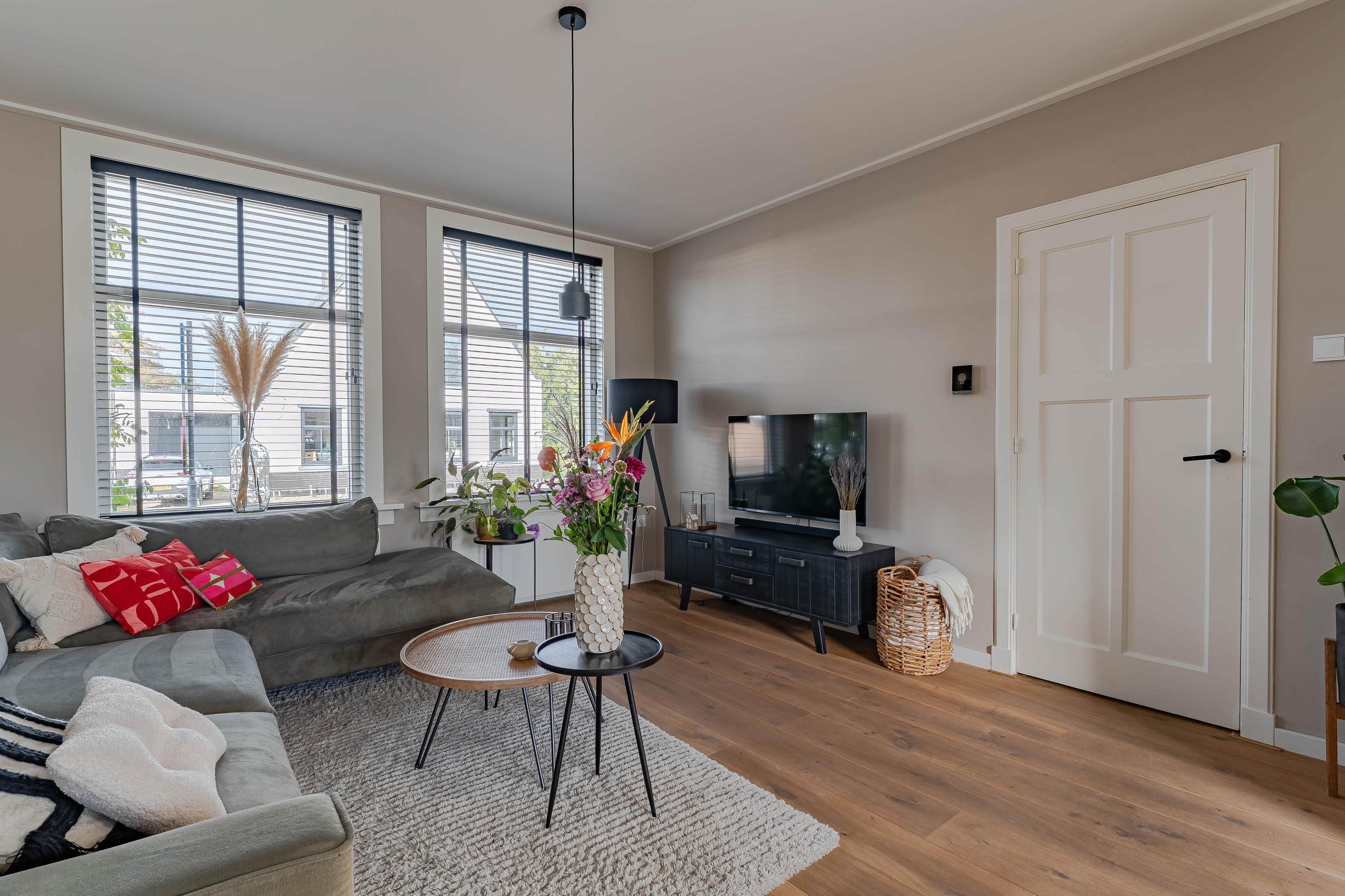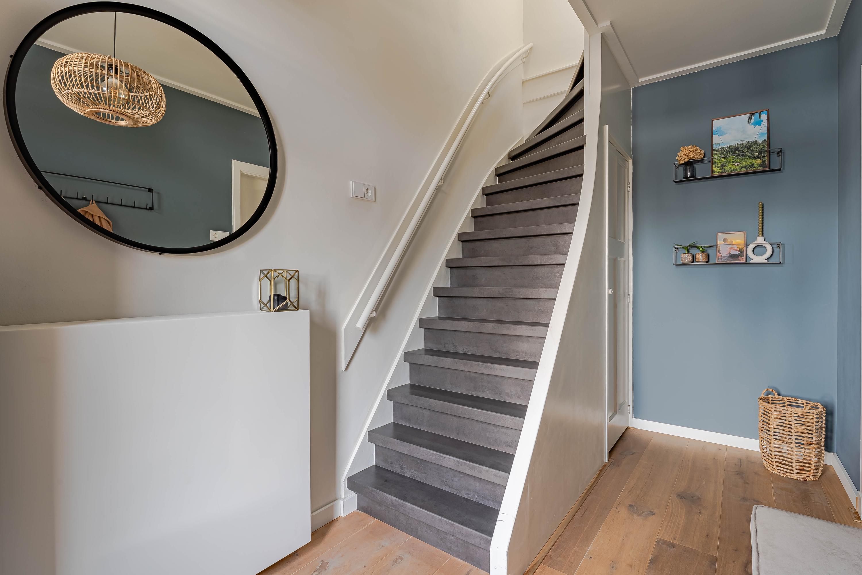 We nemen u graag mee door de woning: Bij binnenkomst via de voordeur komt u in de hal, die toegang biedt tot de trap naar de eerste verdieping en een deur naar de kelder, waar zich onder andere de groepenkast bevindt. De ruime en lichte woonkamer heeft grote ramen aan zowel de voor- als de achterzijde, met aan de achterzijde een prachtig vrij uitzicht.